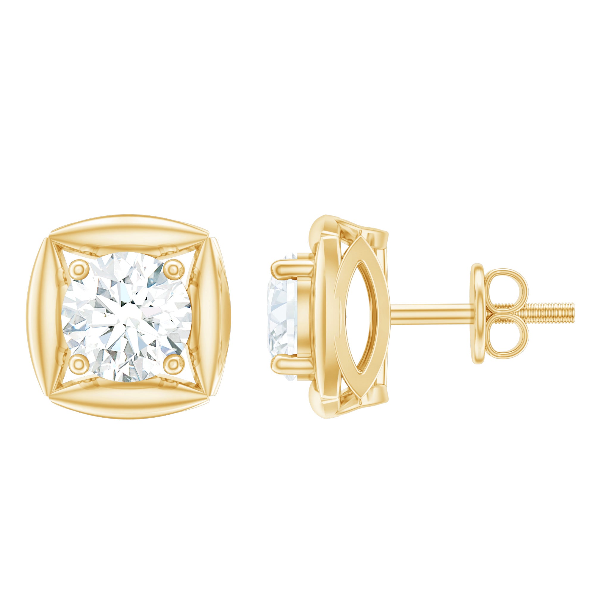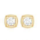 Unique Stud Earrings embellished with 4.5 MM Brilliant Round Cut Moissanite is set as Solitaire in a Prong Setting, crafted in a Solid Gold Metal.