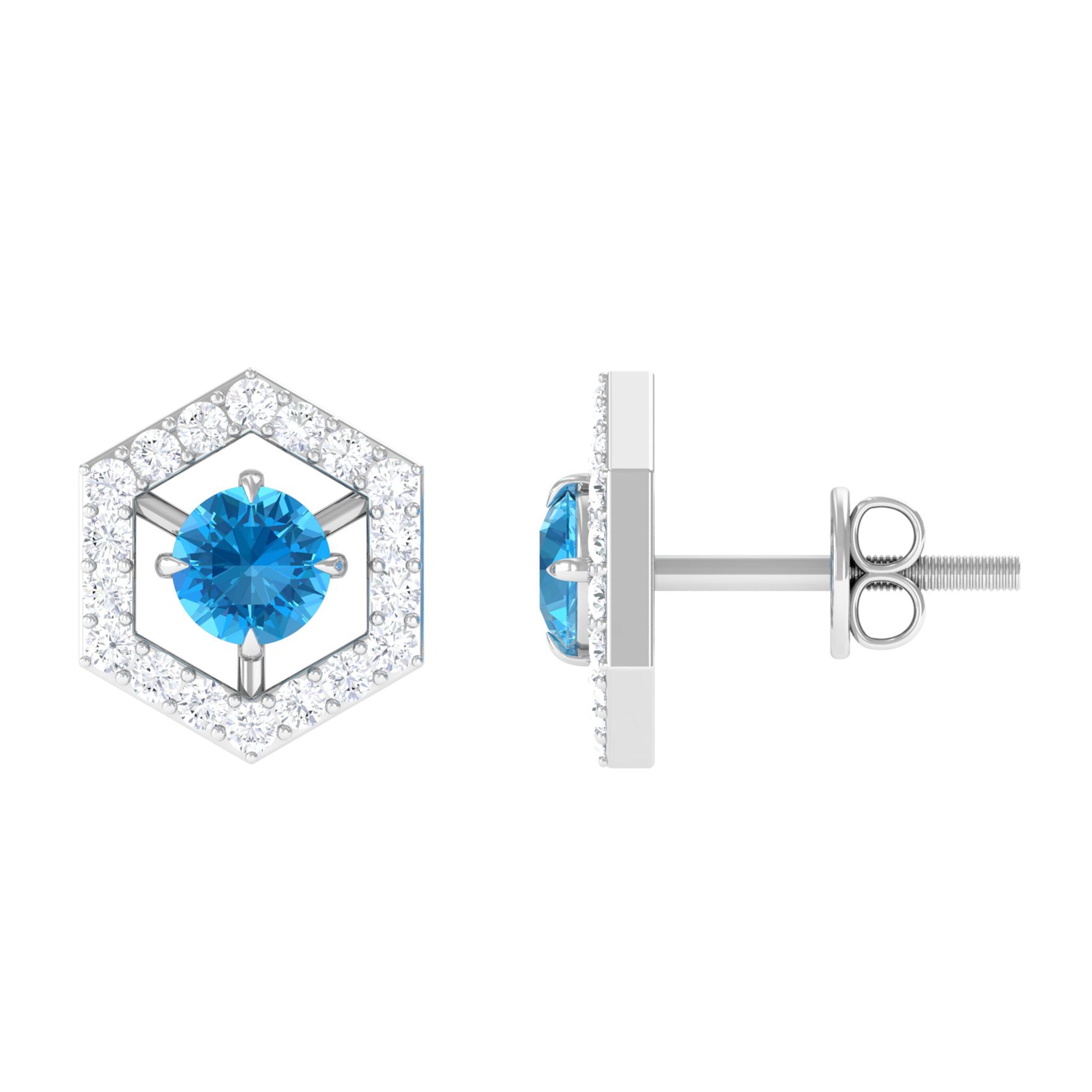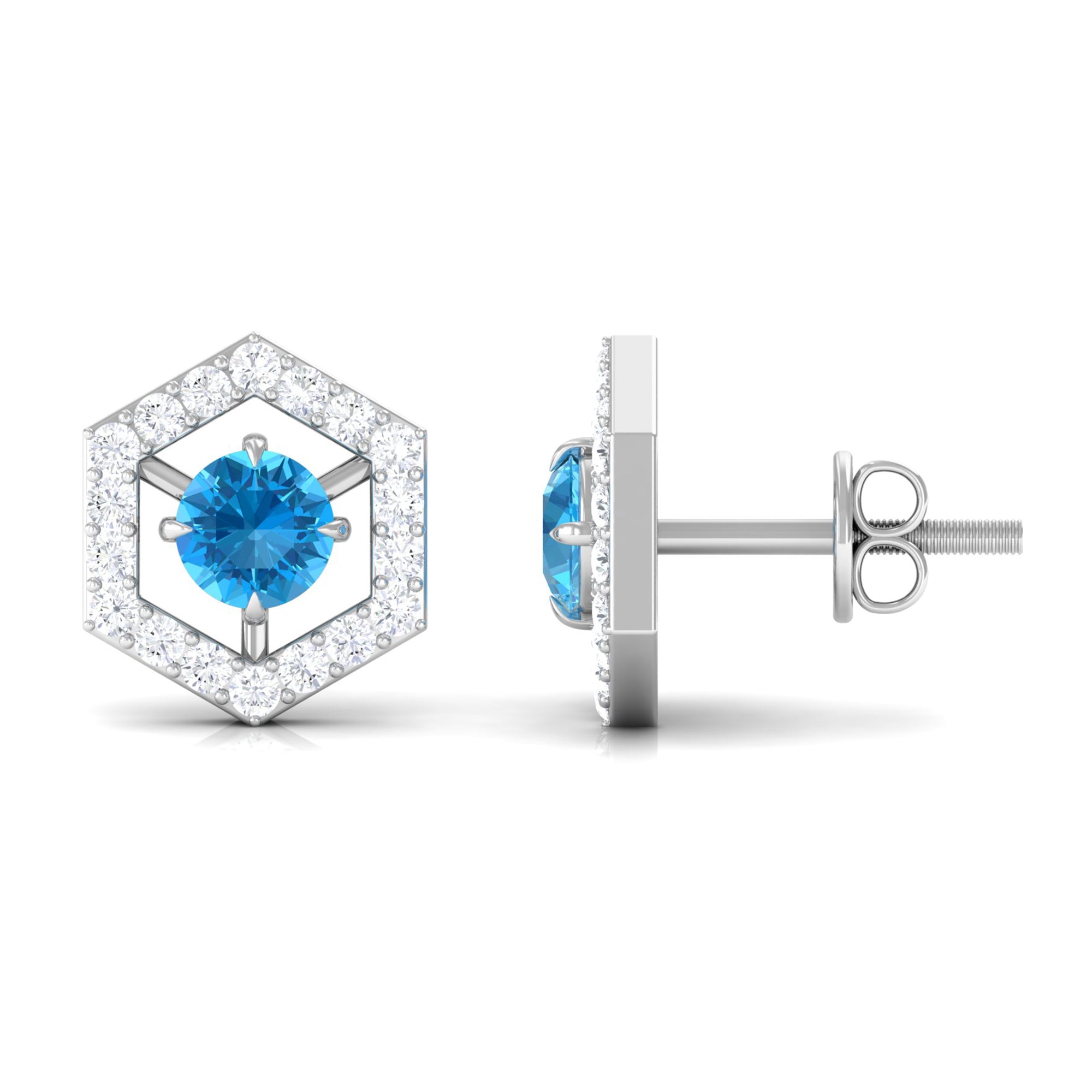 3/4 CT Minimal Swiss Blue Topaz and Diamond Geometric Stud Earrings