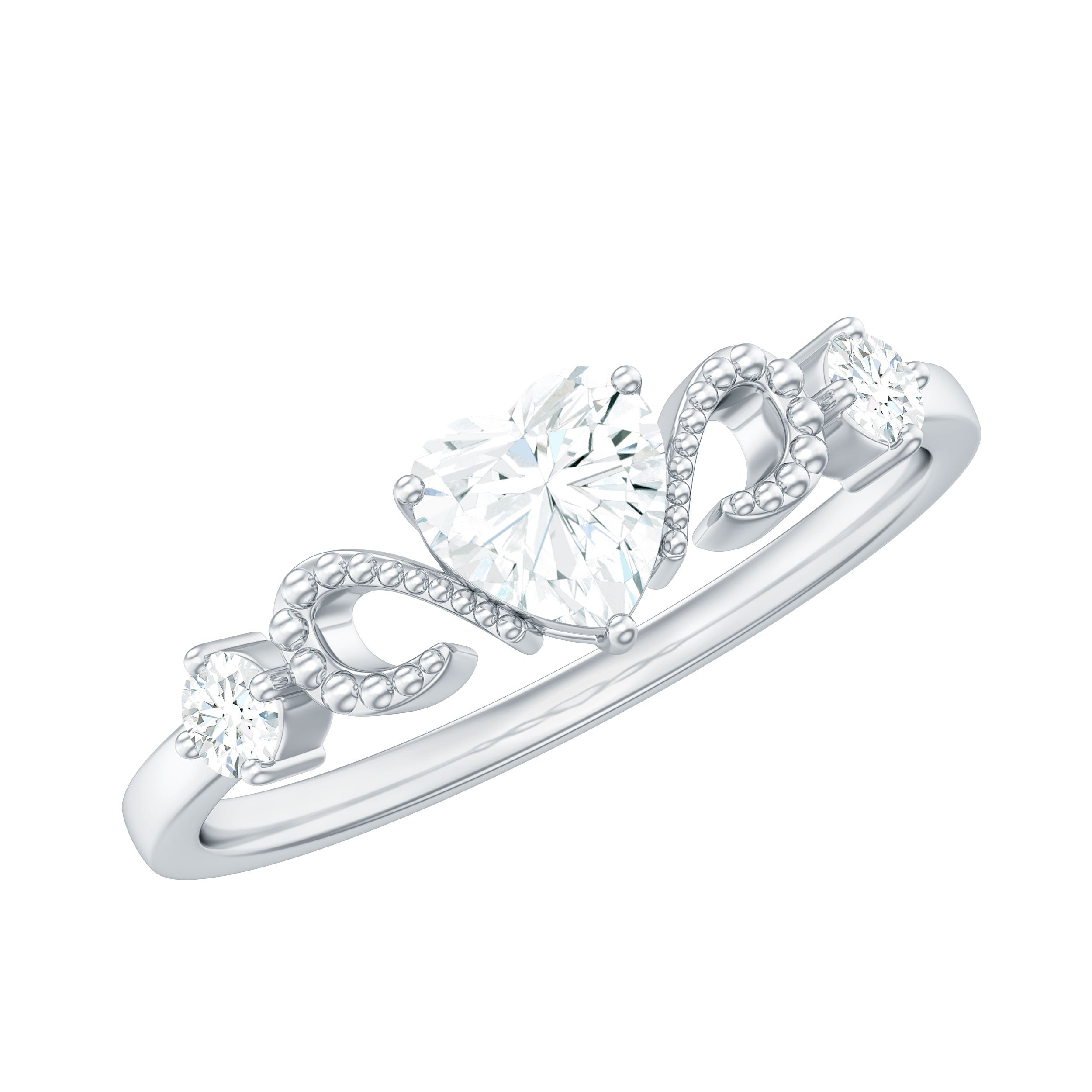 3/4 CT Minimal Zircon Heart Engagement Ring with Gold Beaded