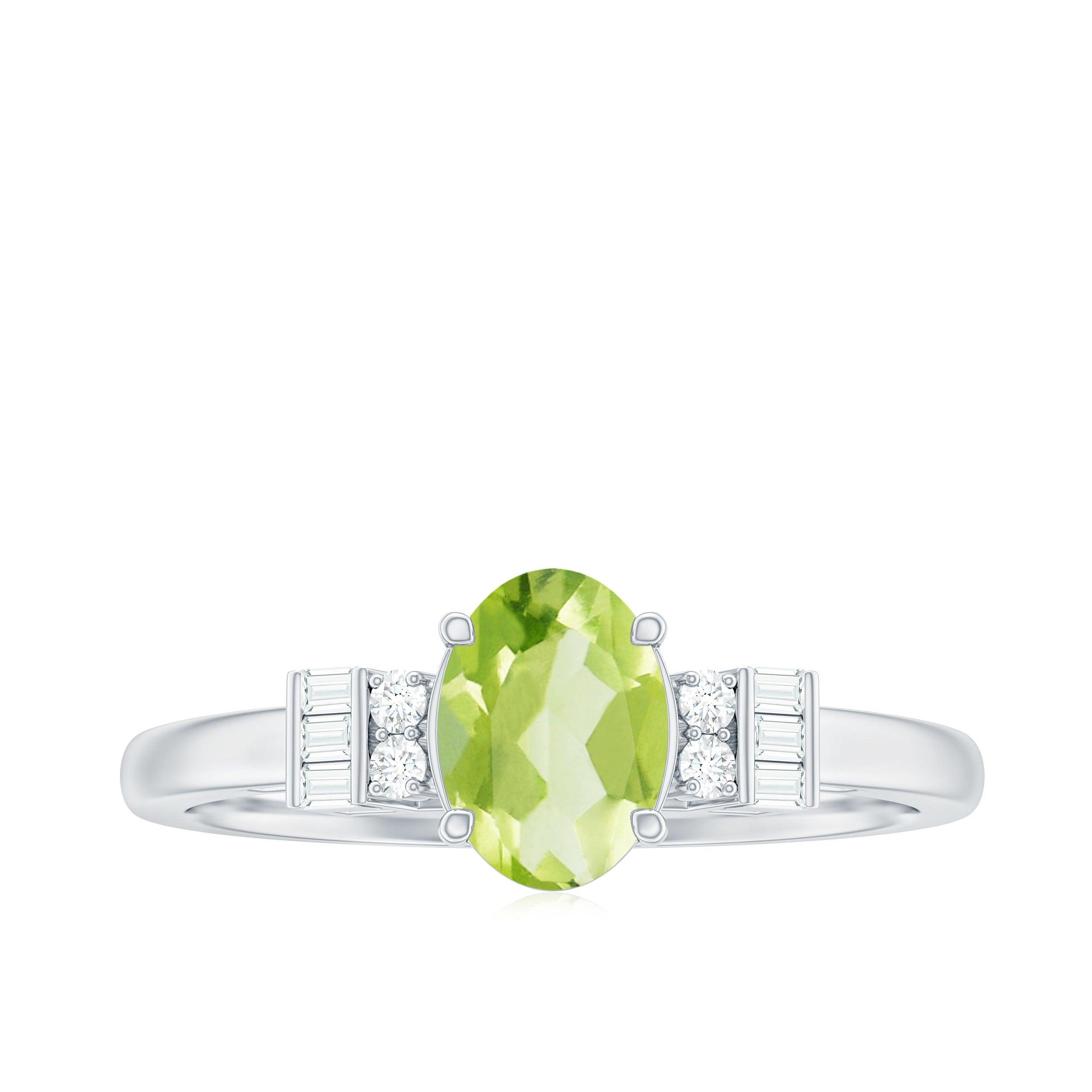 3/4 CT Natural Oval Cut Peridot Classic Engagement Ring with Diamond