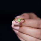 Stand out with this radiant green solitaire ring, featuring a round-cut peridot set in a delicate lotus basket setting. The ring is expertly crafted from gold for a luxurious finish, making it an unforgettable piece of jewelry for any woman.