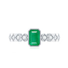 Vintage Looking Emerald Cut Emerald Engagement Ring with Diamond
