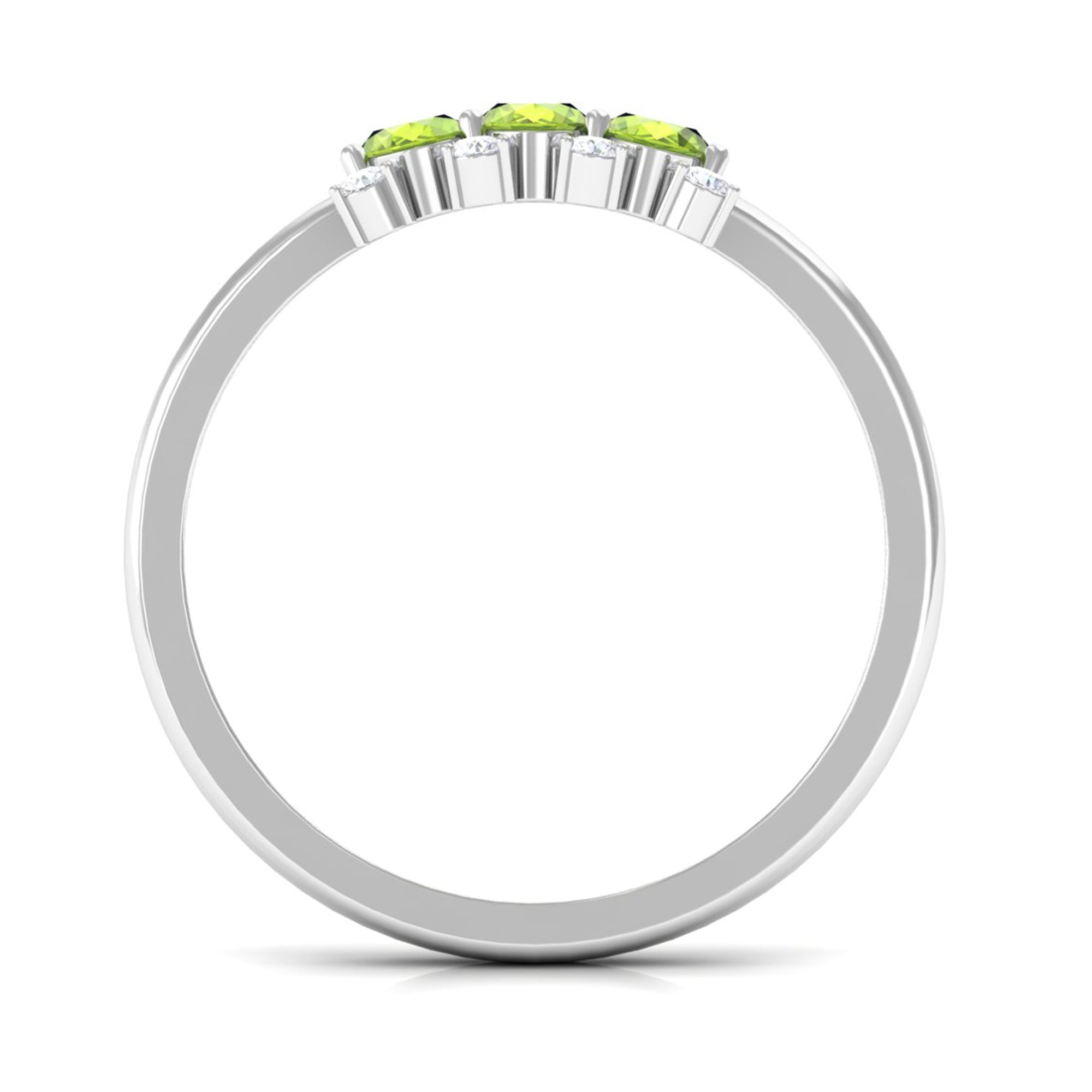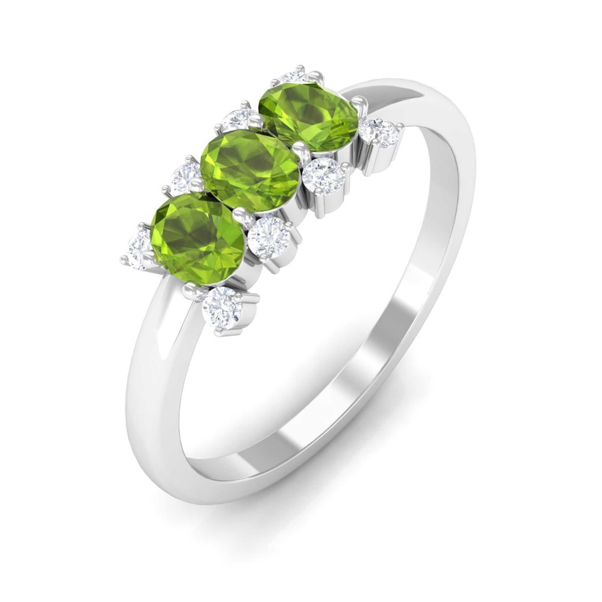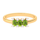 3/4 CT Oval Cut Peridot Three Stone Ring with Diamond Stones