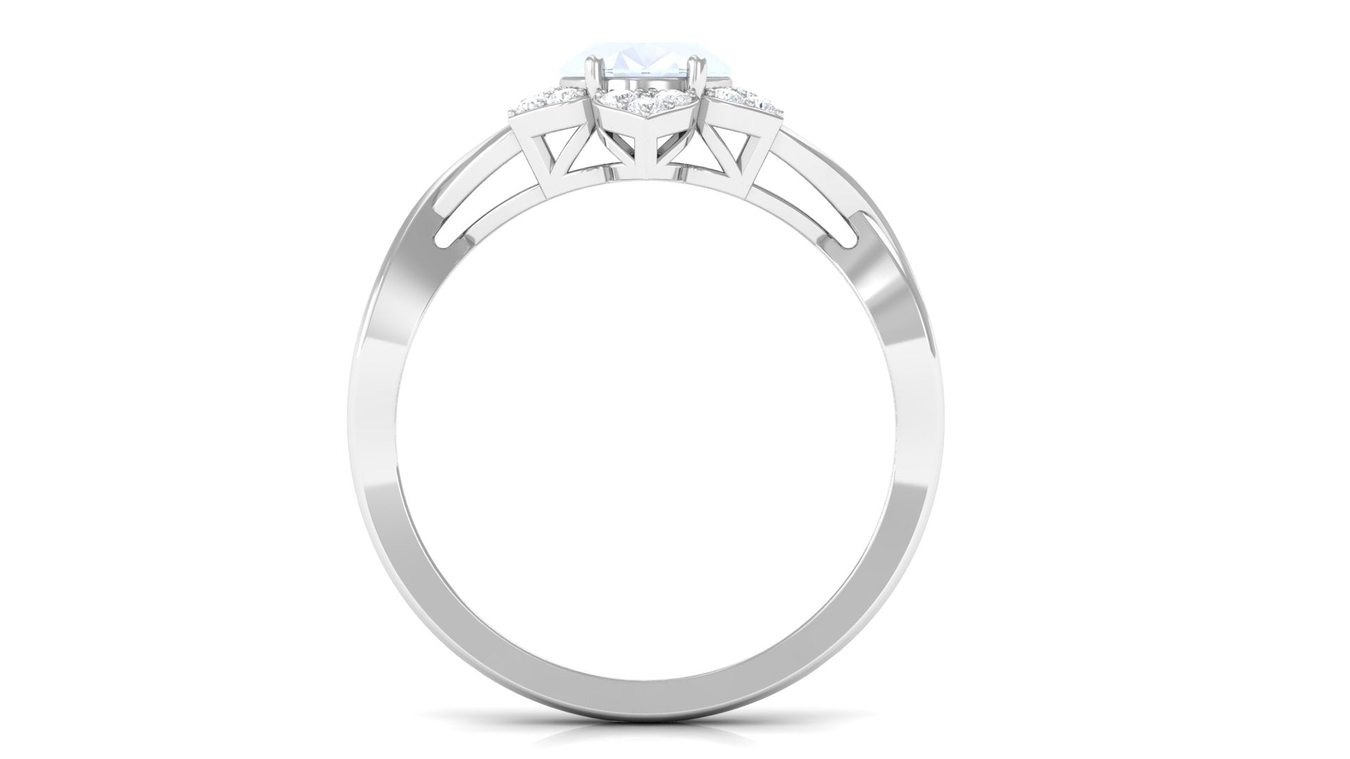 3/4 CT Oval Cut Solitaire Moonstone and Diamond Floral Halo Ring