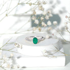 Solitaire Oval Emerald Engagement Ring with Diamonds