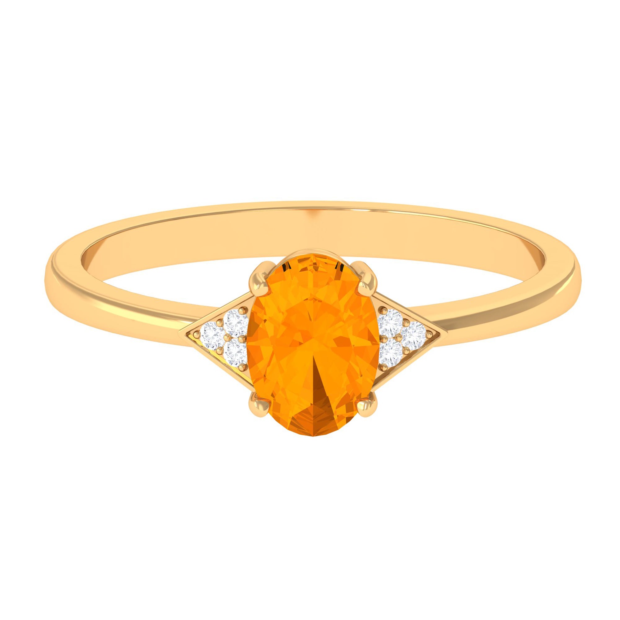3/4 CT Oval Fire Opal Solitaire Ring with Diamond Accent