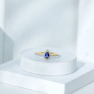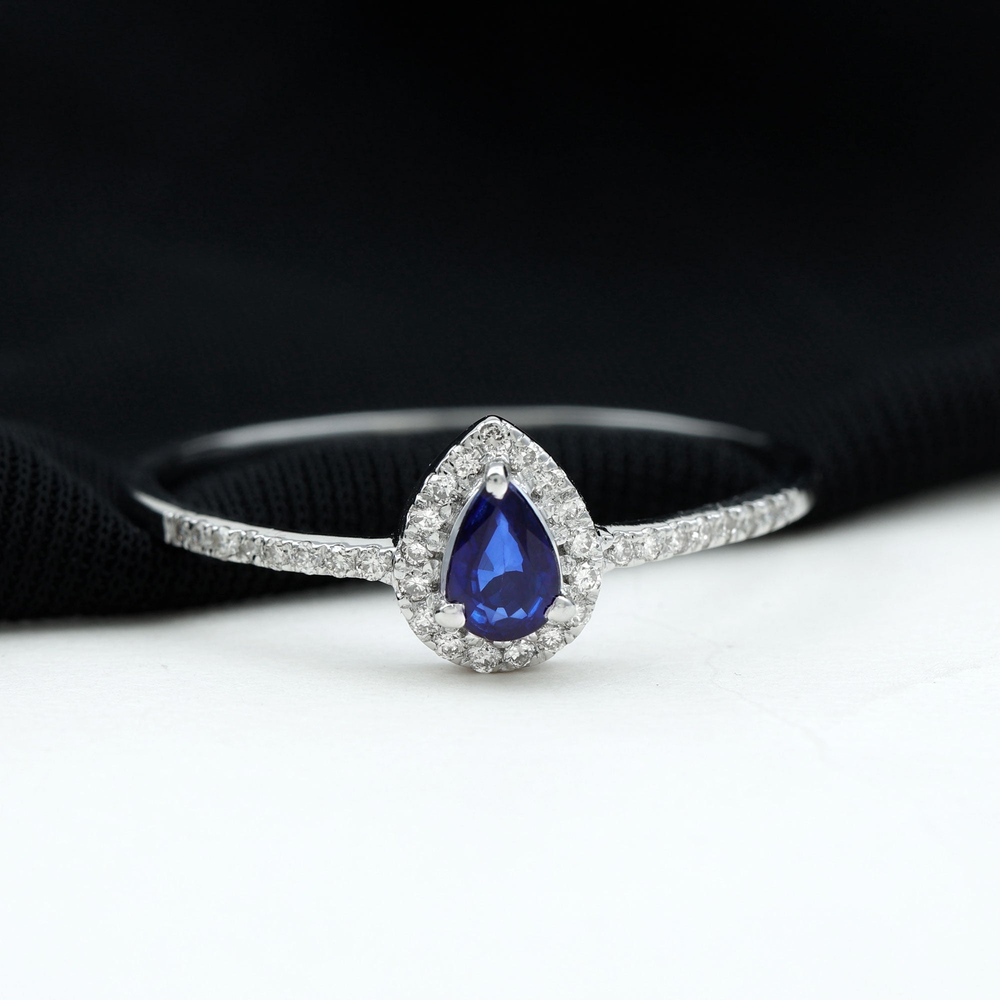 3/4 CT Pear Cut Blue Sapphire Engagement Ring with Diamond Halo