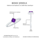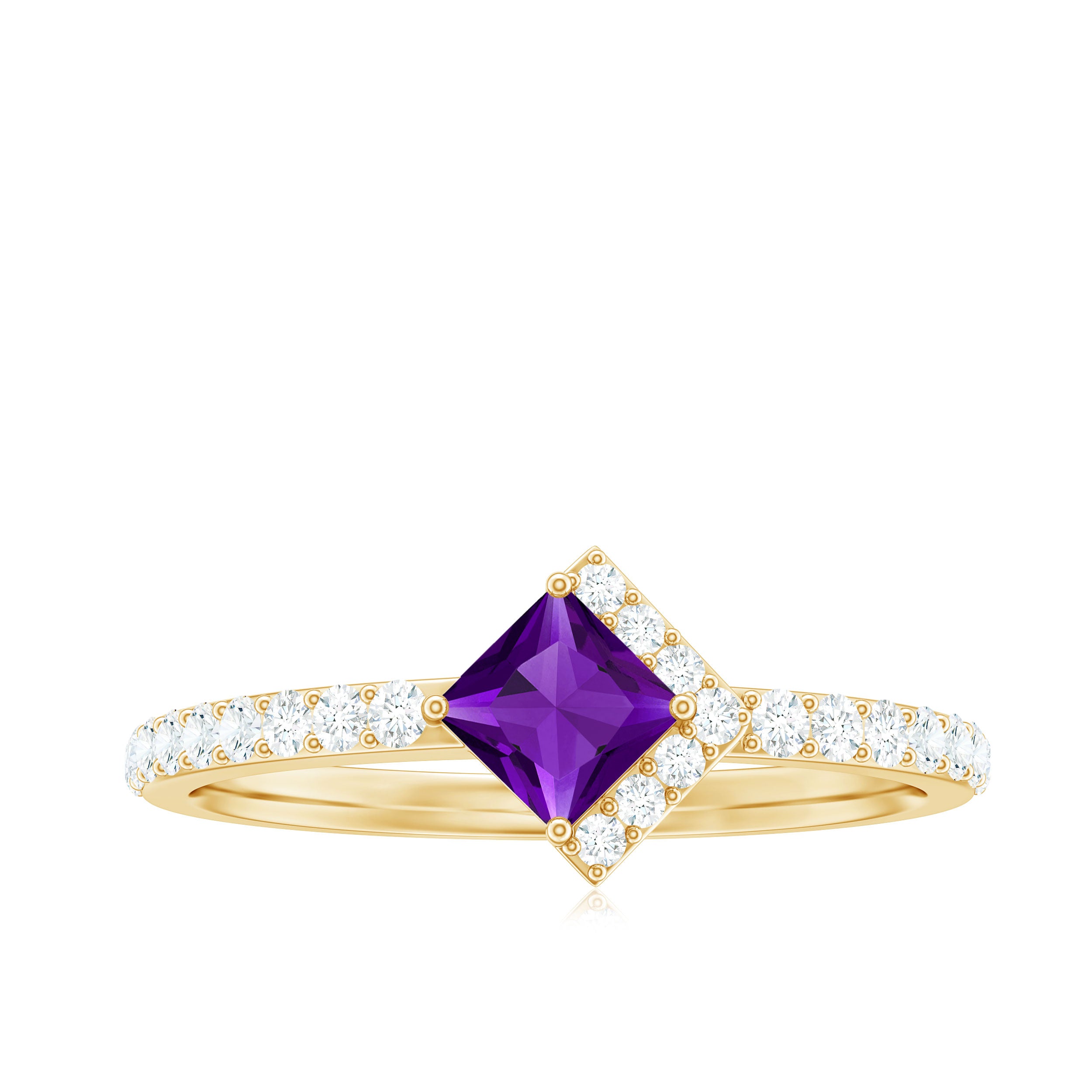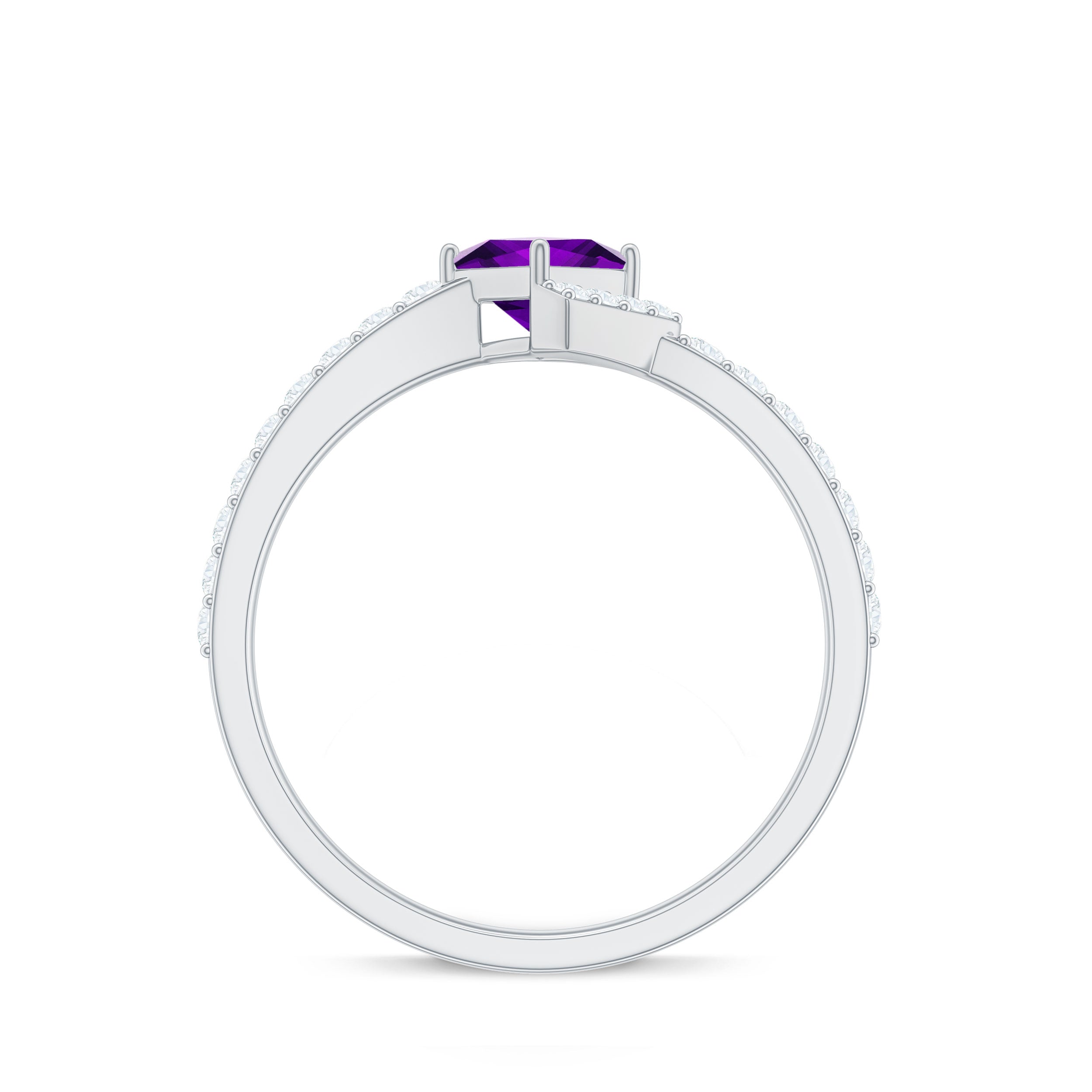 3/4 Ct Princess Amethyst Half Halo Promise Ring with Diamond