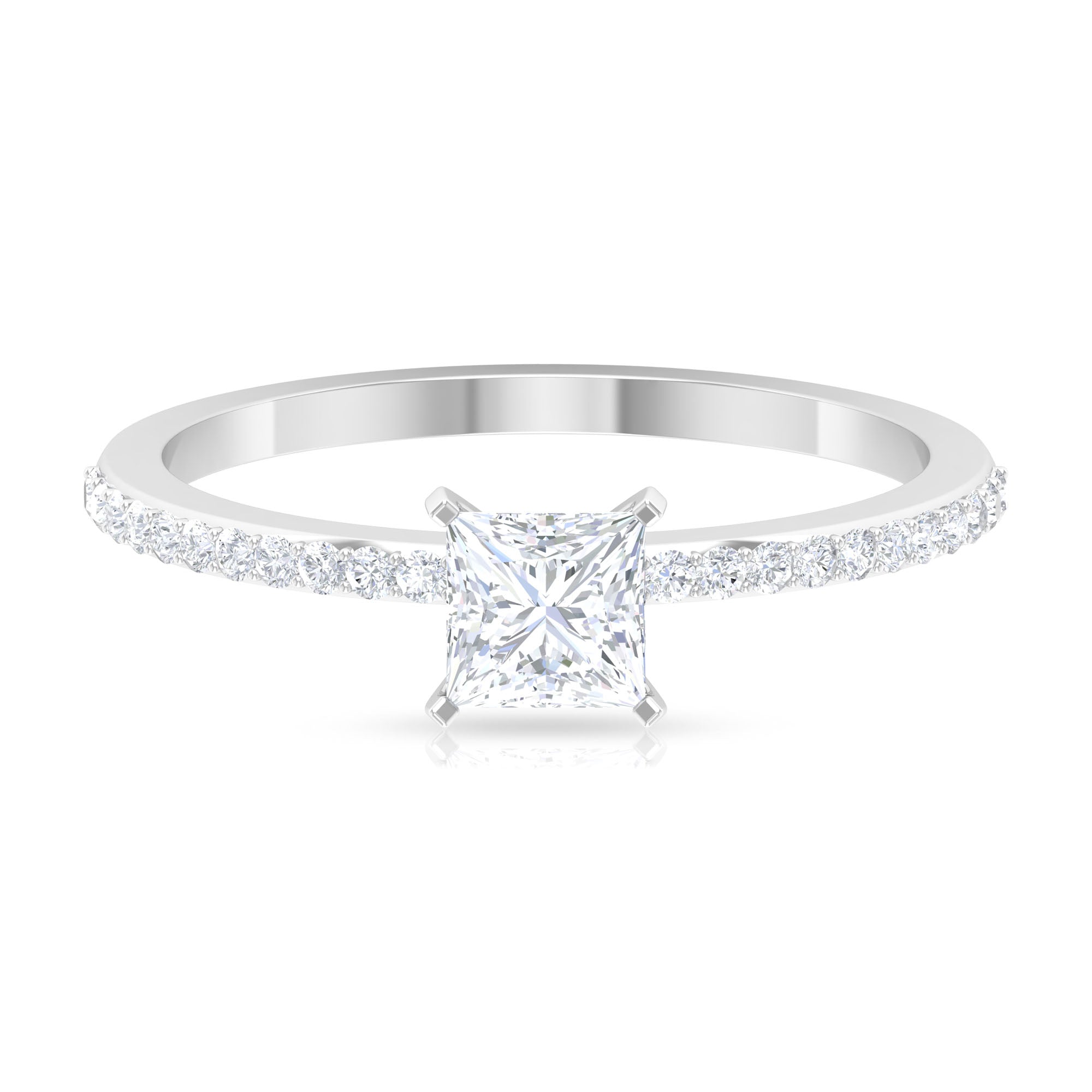 3/4 CT Princess Cut Cubic Zircon Solitaire Ring with Side Stones