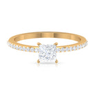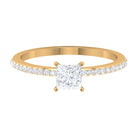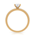 Flaunt in the parties with this Solitaire Ring. This Solitaire Ring is embellished with Princess Cut Zircon set in Peg Head Setting with Zircon Side Stones, crafted in Gold Metal.