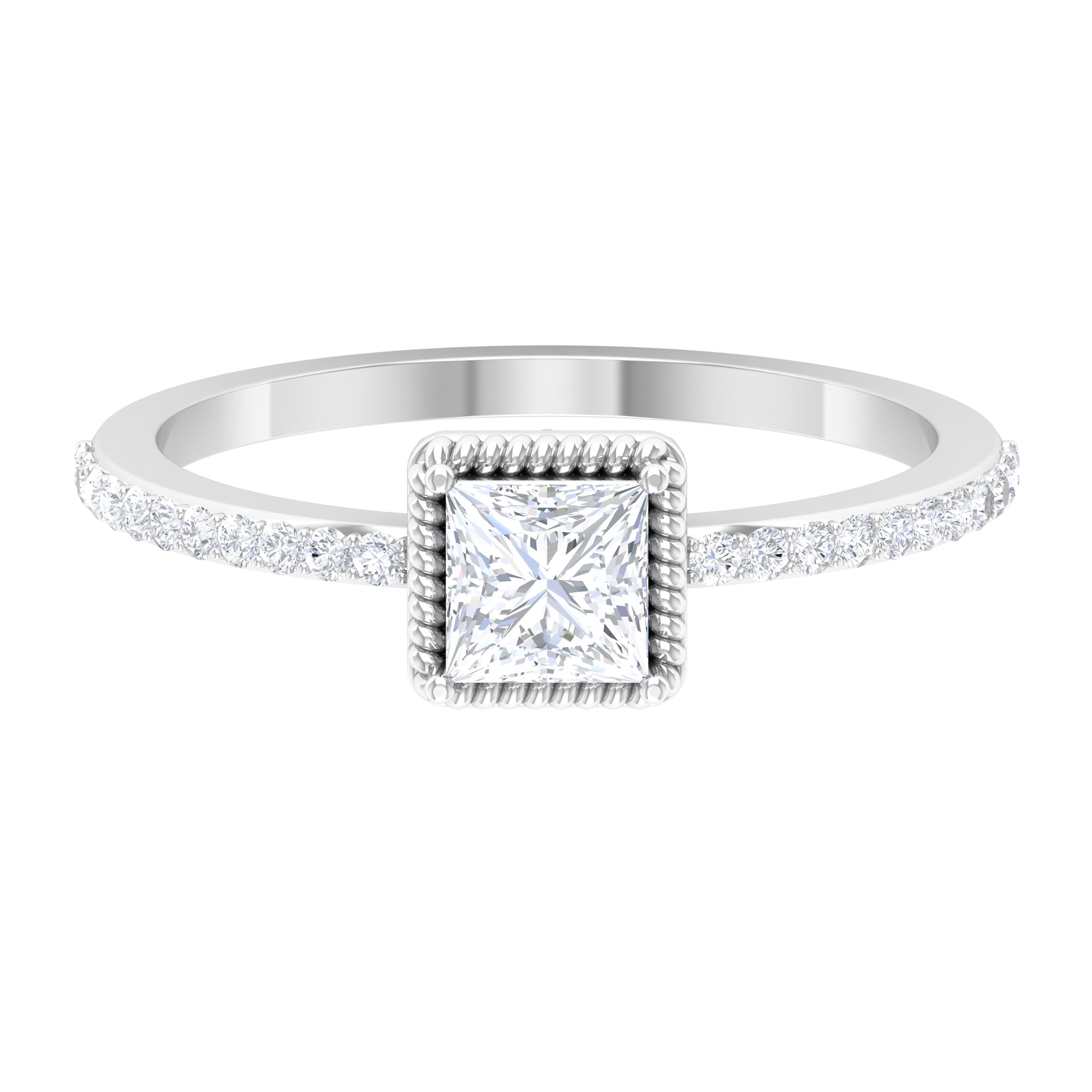 3/4 CT Princess Cut Zircon Solitaire Ring with Side Stones