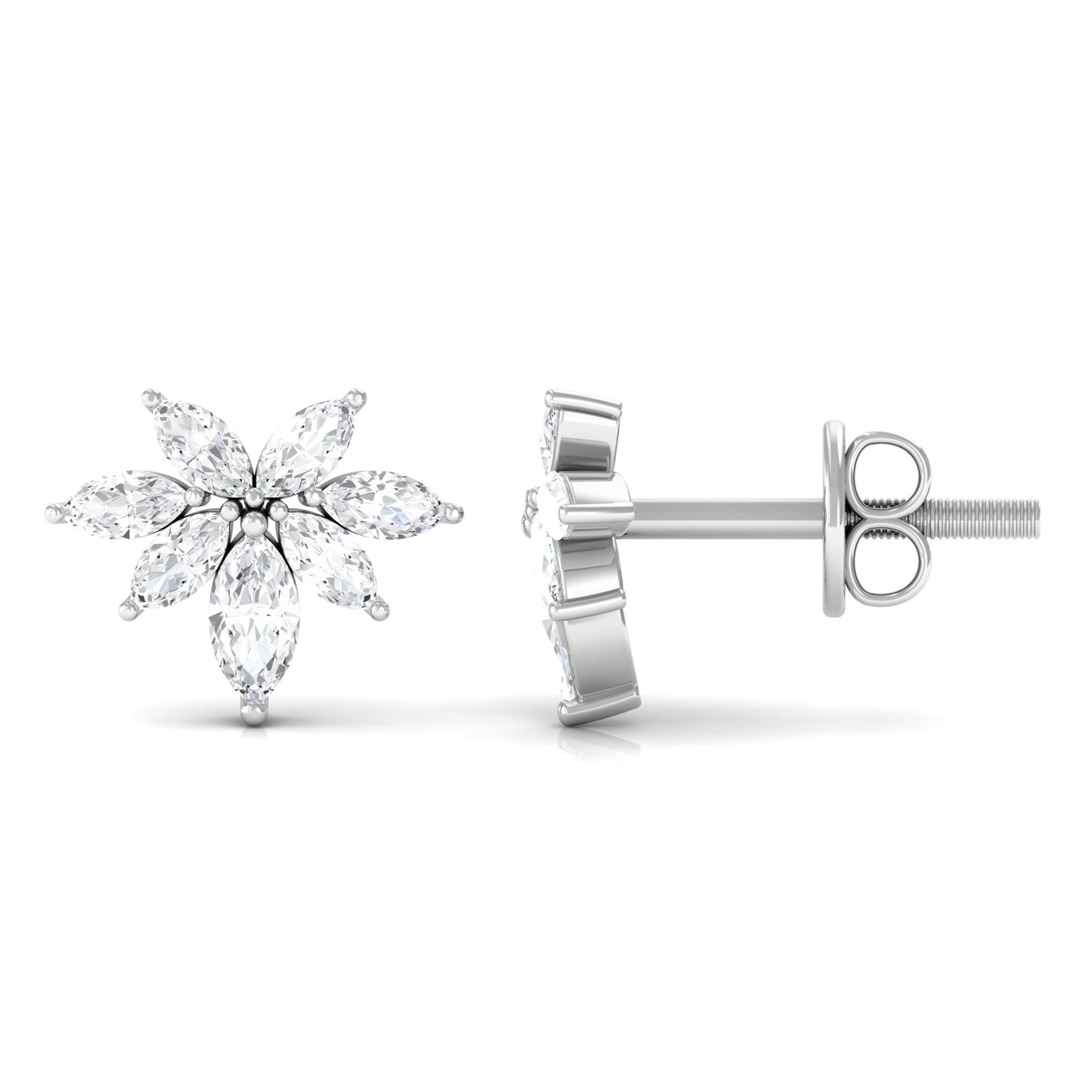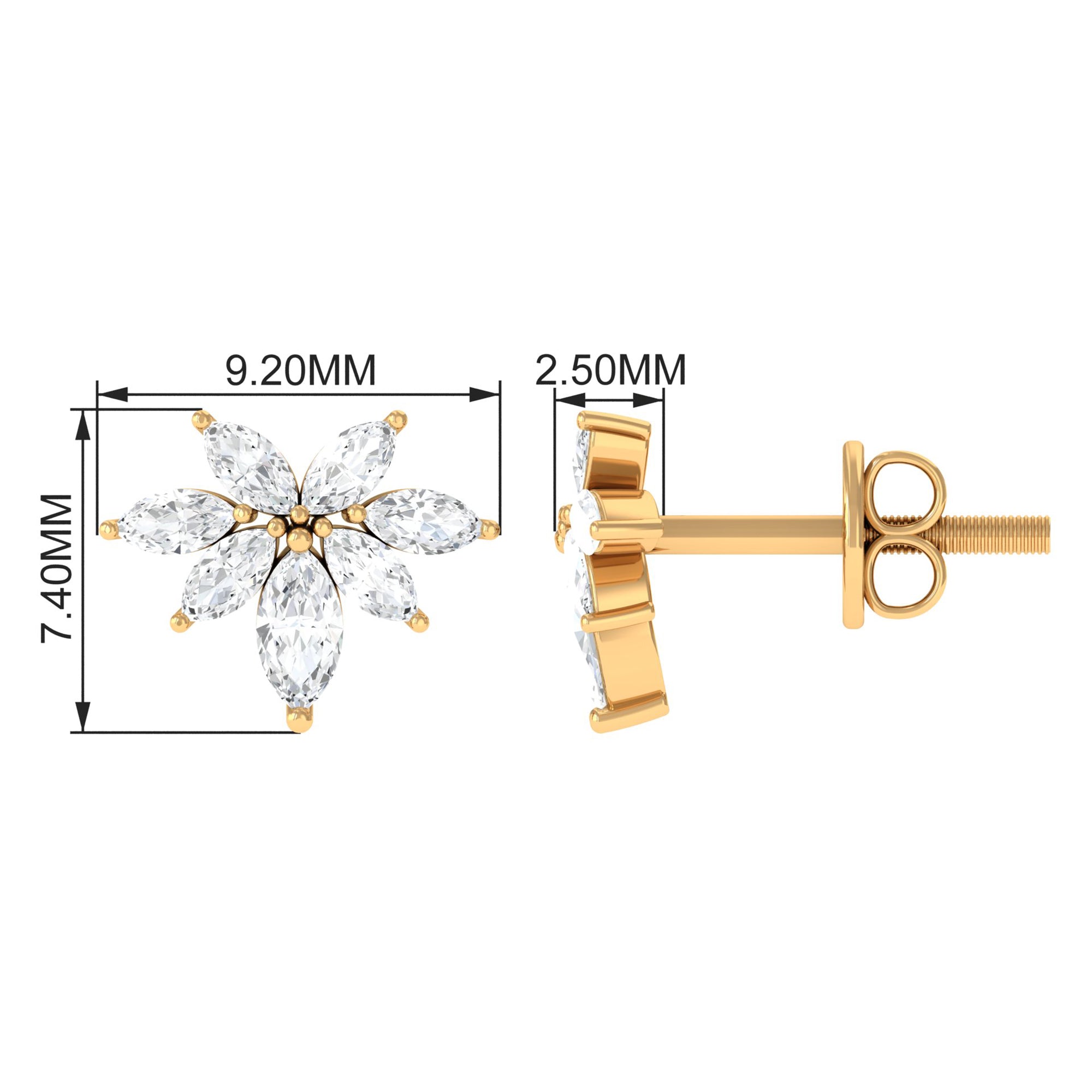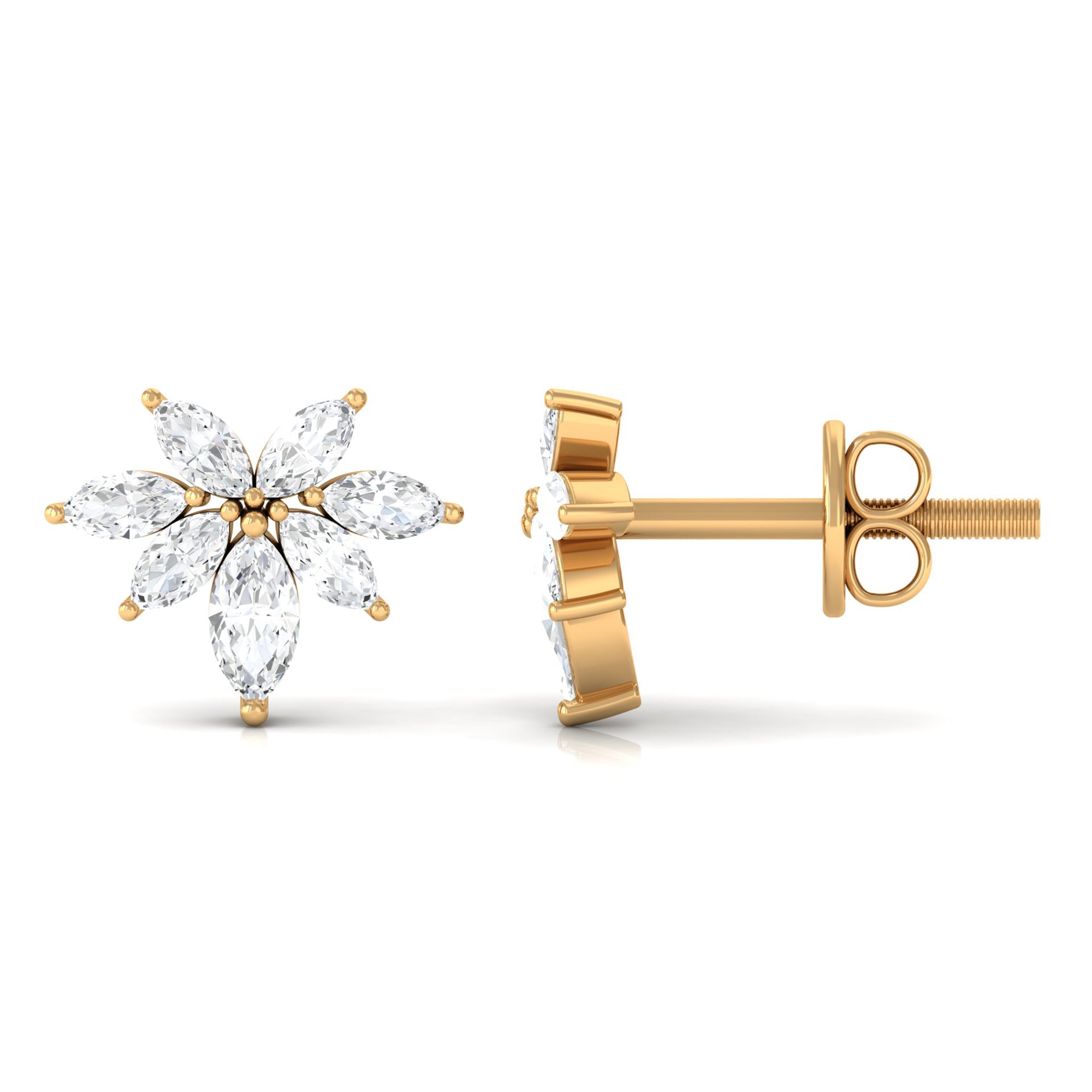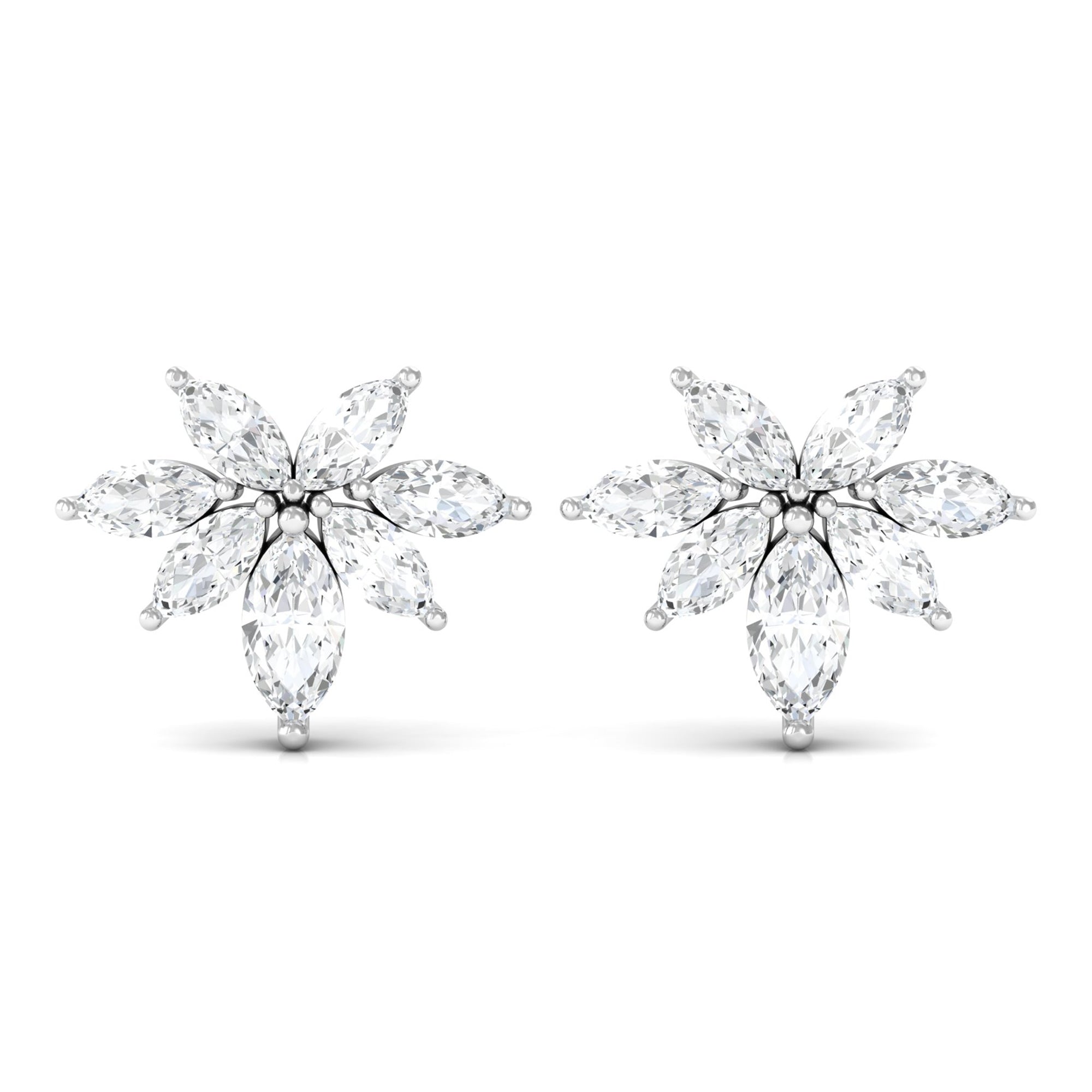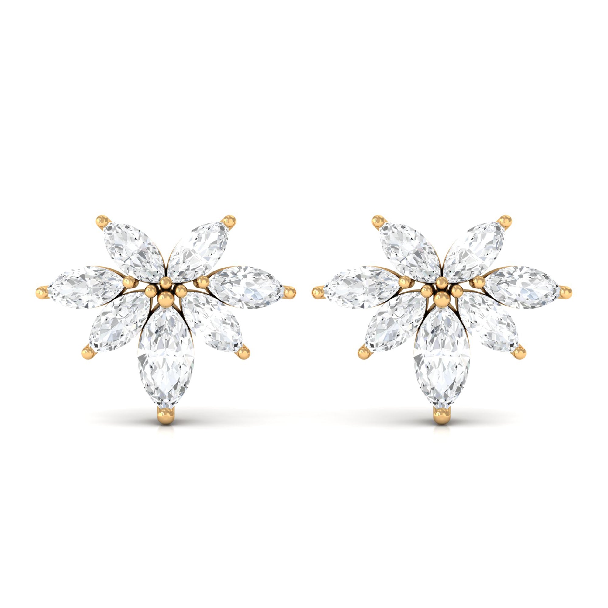 These stunning stud earrings feature a cluster of marquise-cut real diamonds set in lustrous gold. The unique design creates a beautiful floral effect, while the high-quality diamonds add sparkle and brilliance to any outfit. These diamond cluster stud earrings are a timeless and versatile addition to any jewelry collection, perfect for adding a touch of elegance to any occasion.