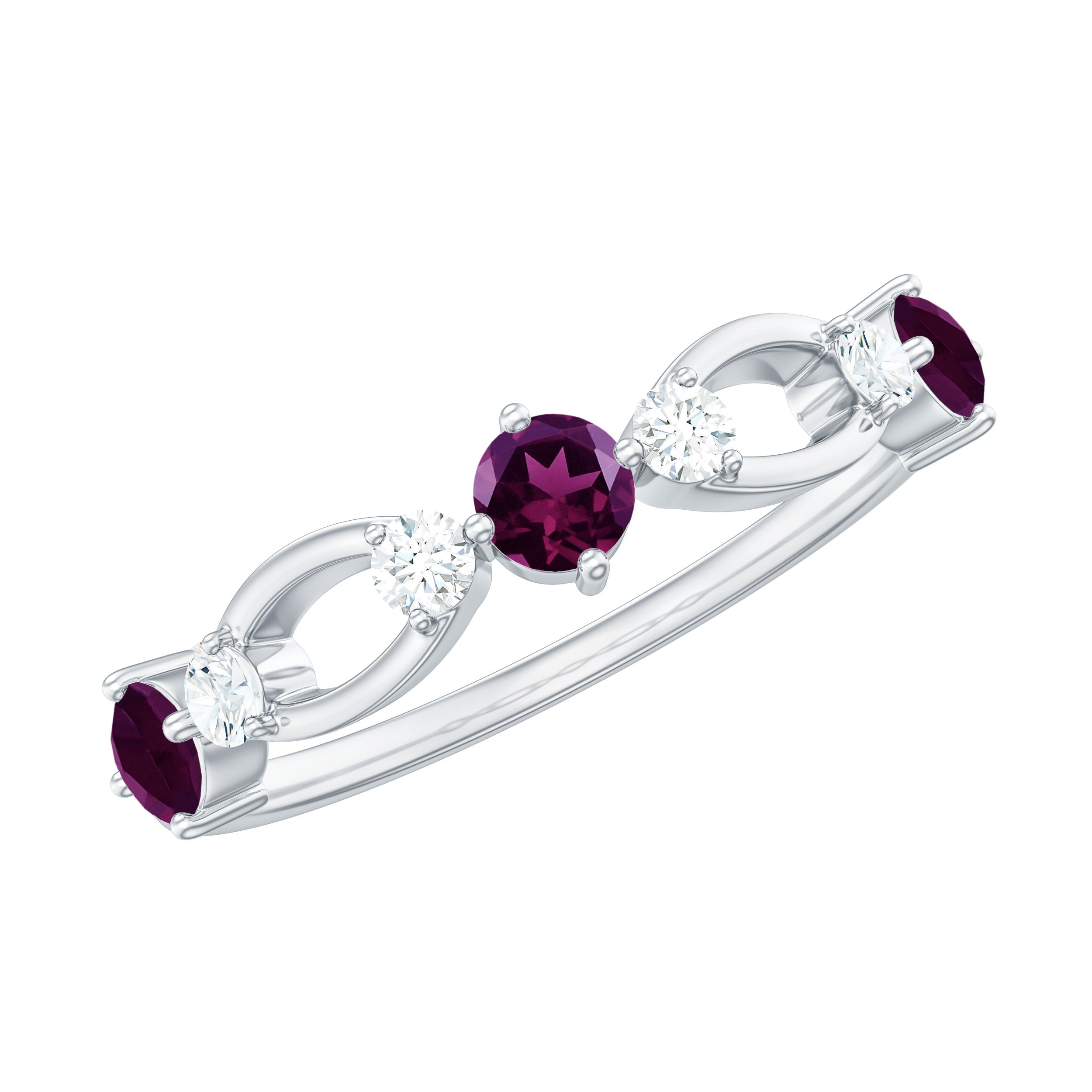 Celebrate milestone by presenting this Rhodolite Ring to her. The Round Shape Rhodolite in Prong Setting and Diamond on Eternity Band Ring is truly a mesmerizing piece. Seal your love with this Rhodolite Half Eternity Band Ring. Stack this with your wedding jewelry or go solo for a minimal look.
