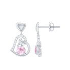 3/4 CT Rose Quartz and Diamond Heart Drop Earrings