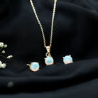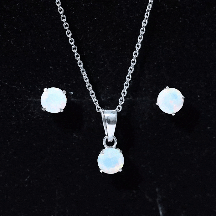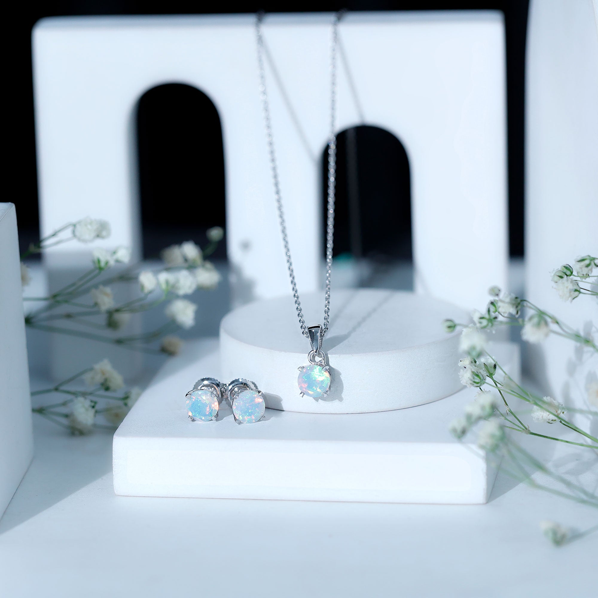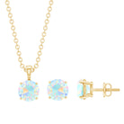 Simple and elegant, this Solitaire Necklace and Earrings Set is crafted with Solid Gold and adorned with Round shape Ethopian Opal to make for a trendy choice for formal or casual occasions.