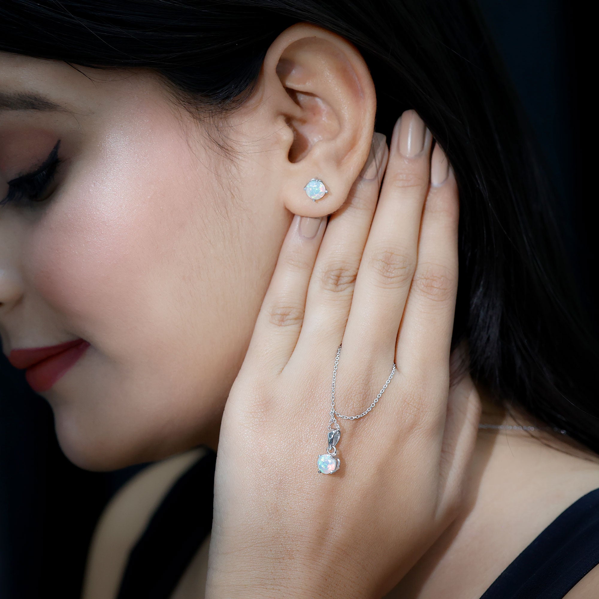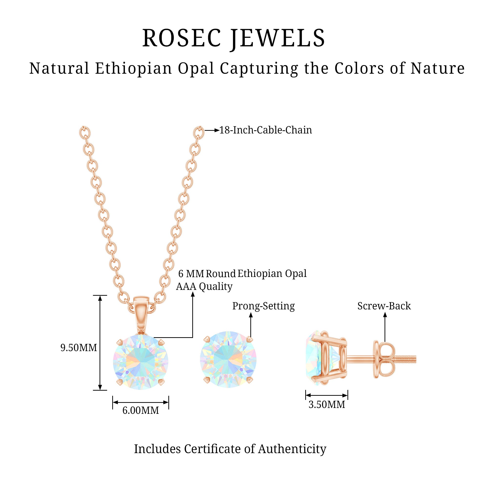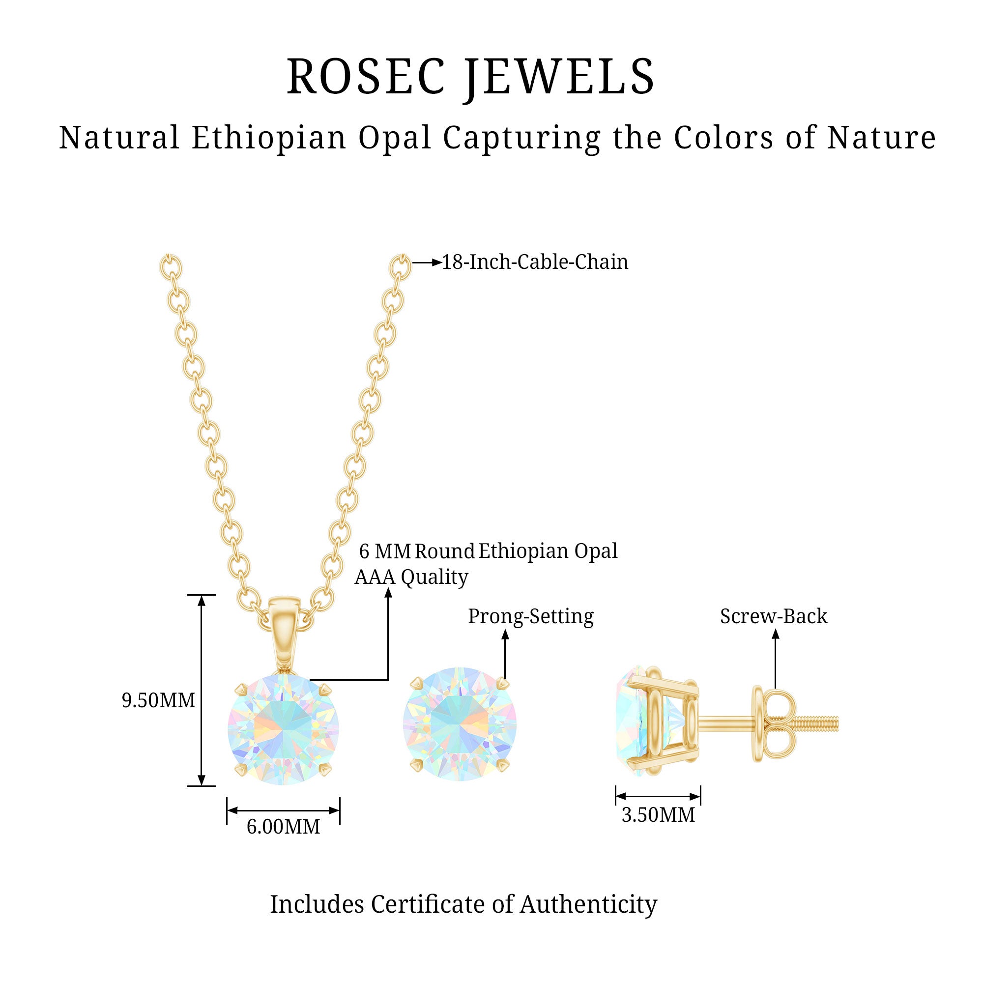 3/4 CT Round Cut Ethopian Opal Solitaire Jewelry Set