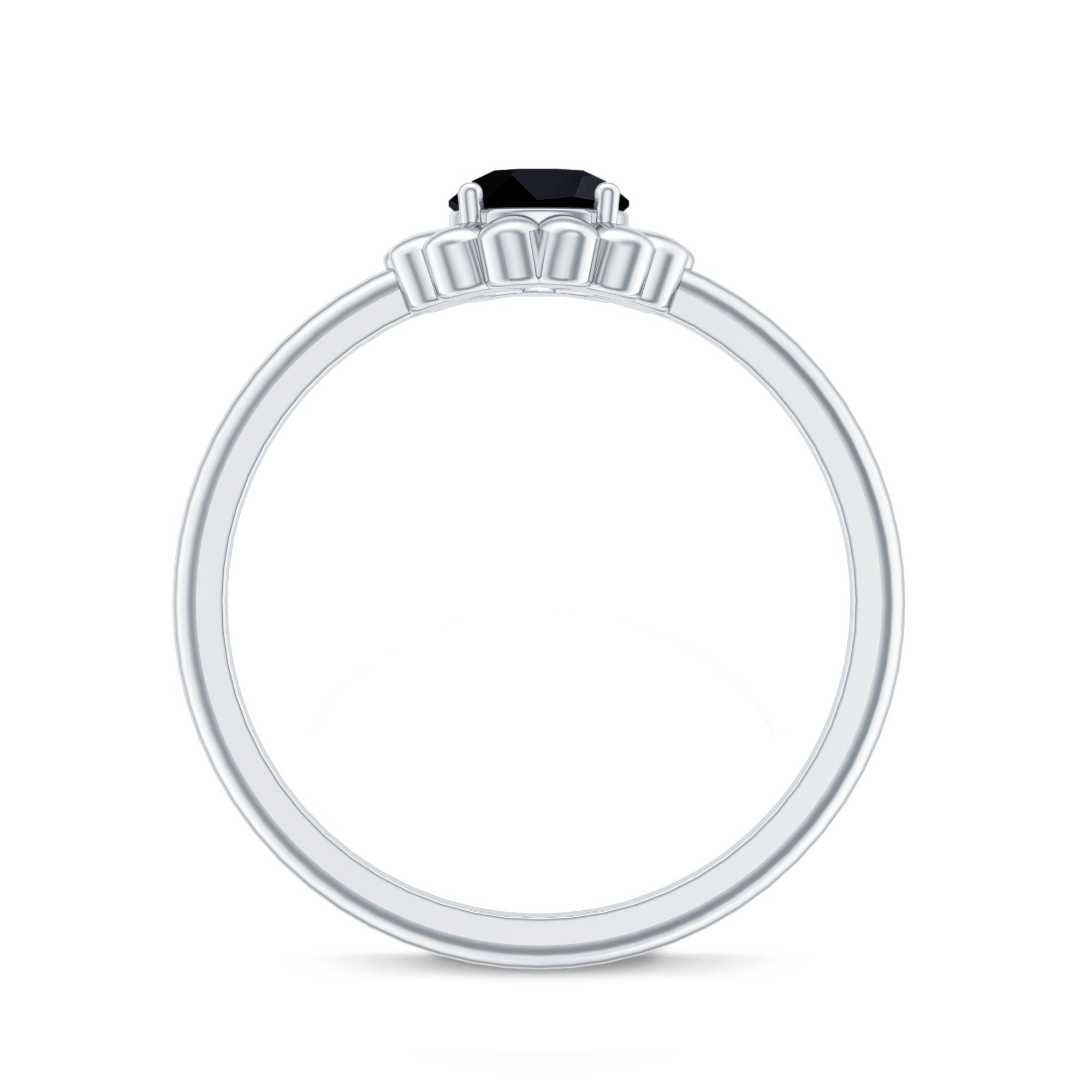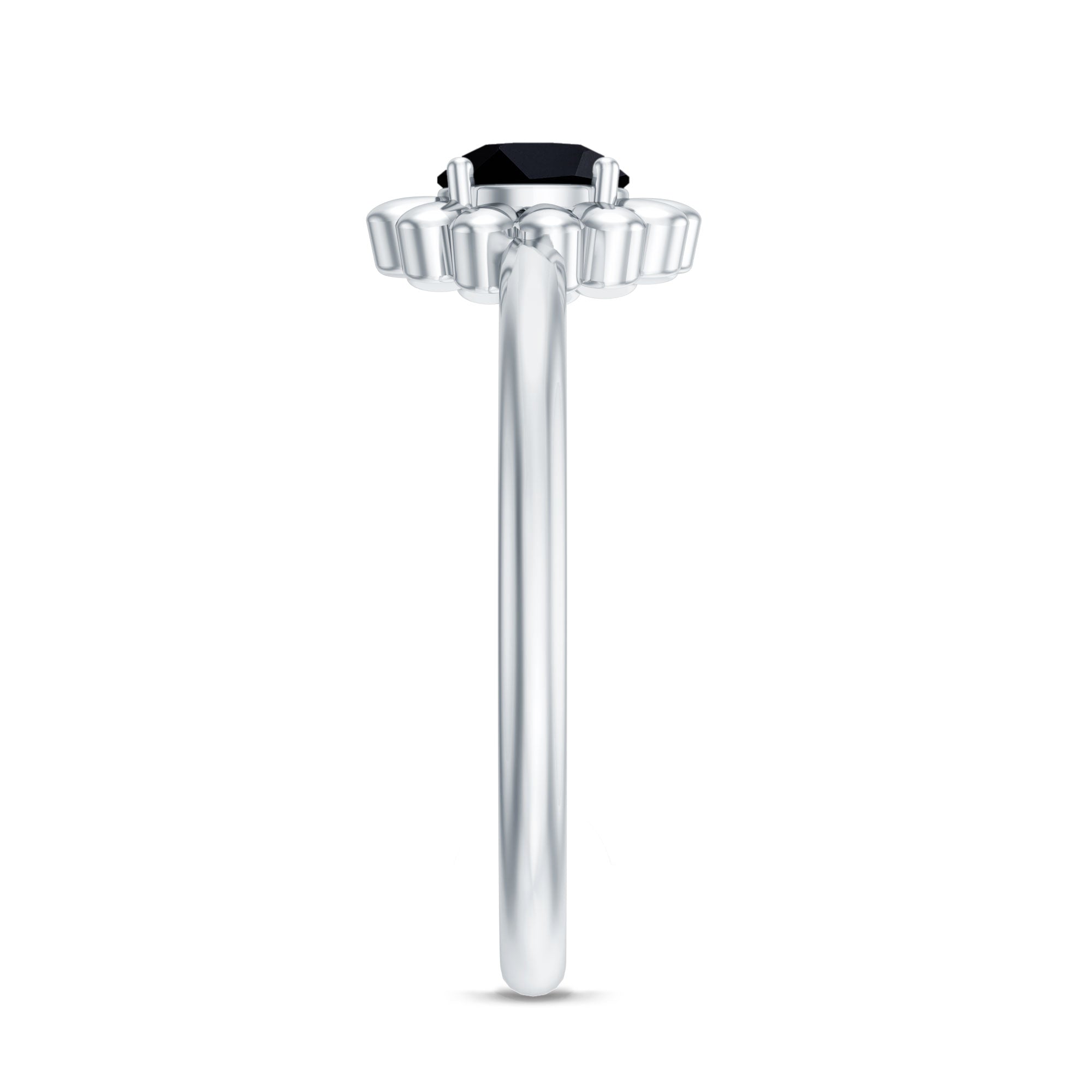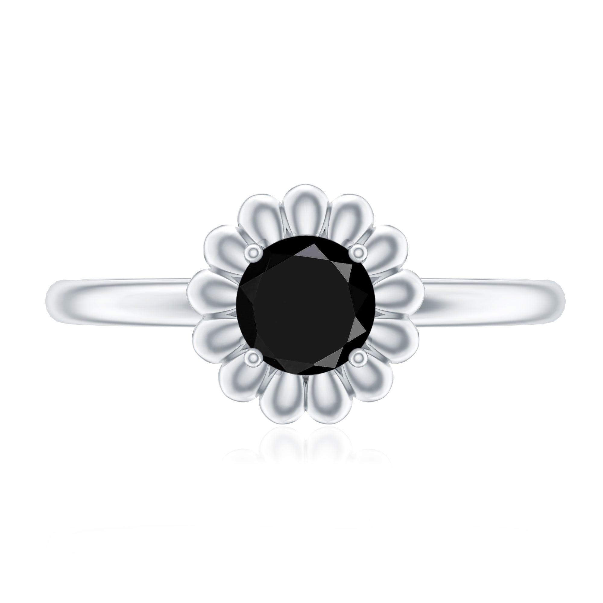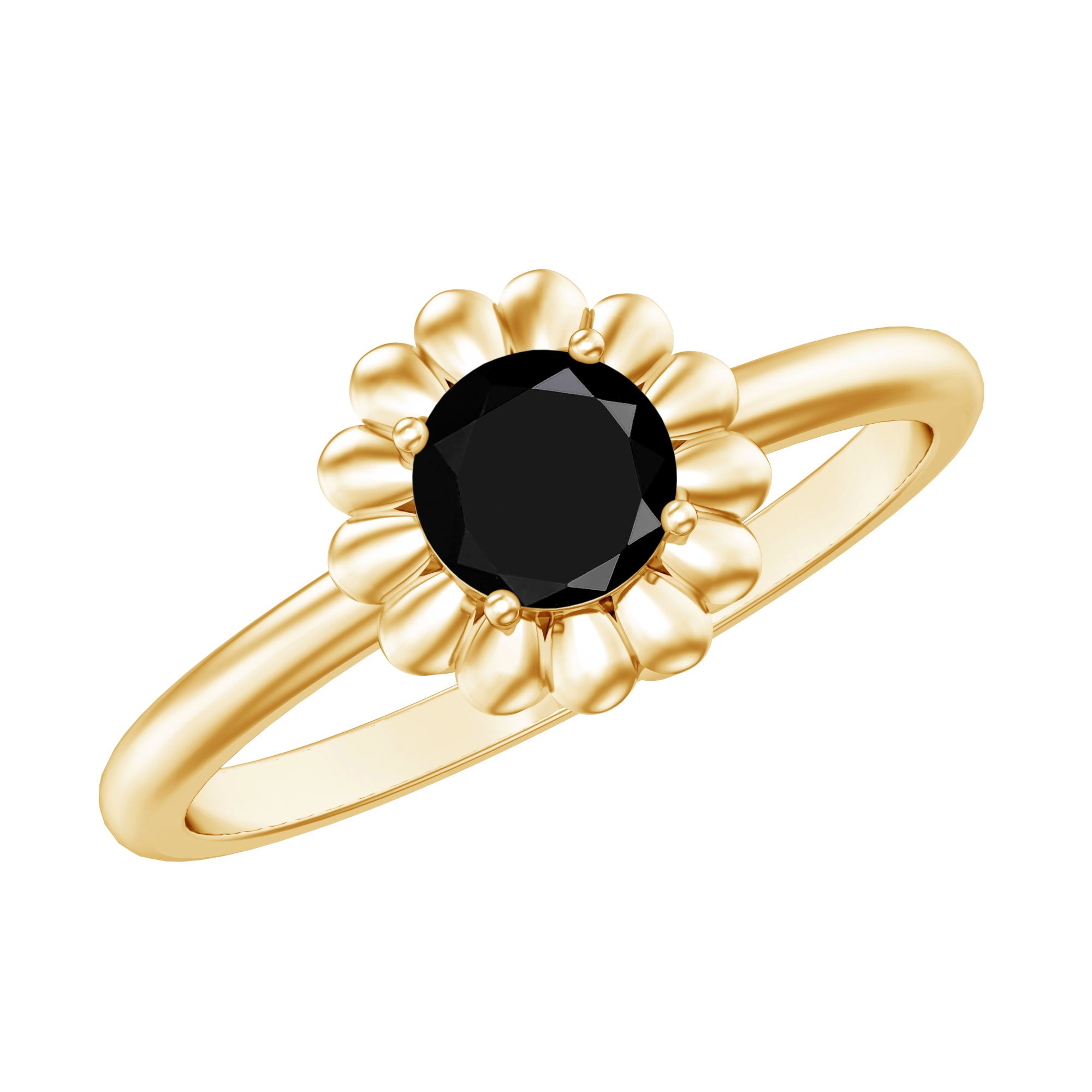 3/4 CT Round Cut Solitaire Created Black Diamond Gold Flower Ring