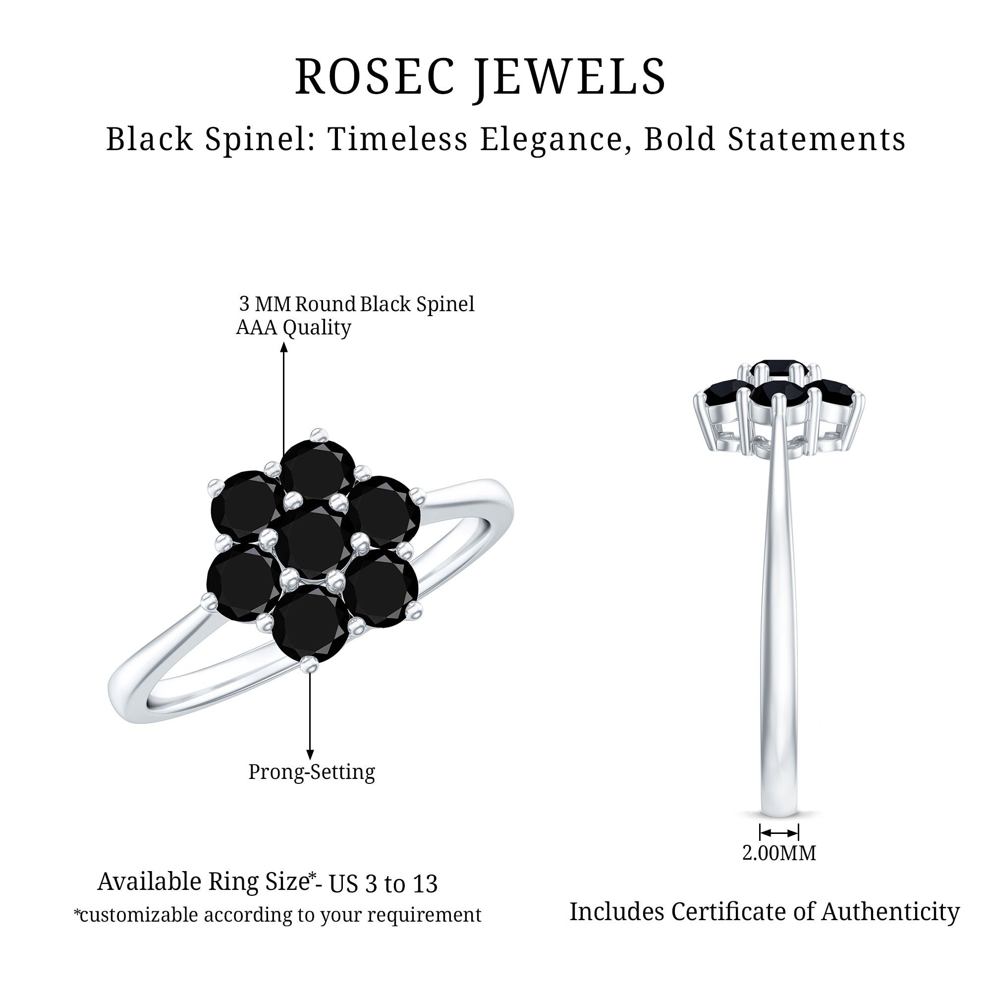 3/4 CT Round Shape Black Spinel Cluster Flower Ring
