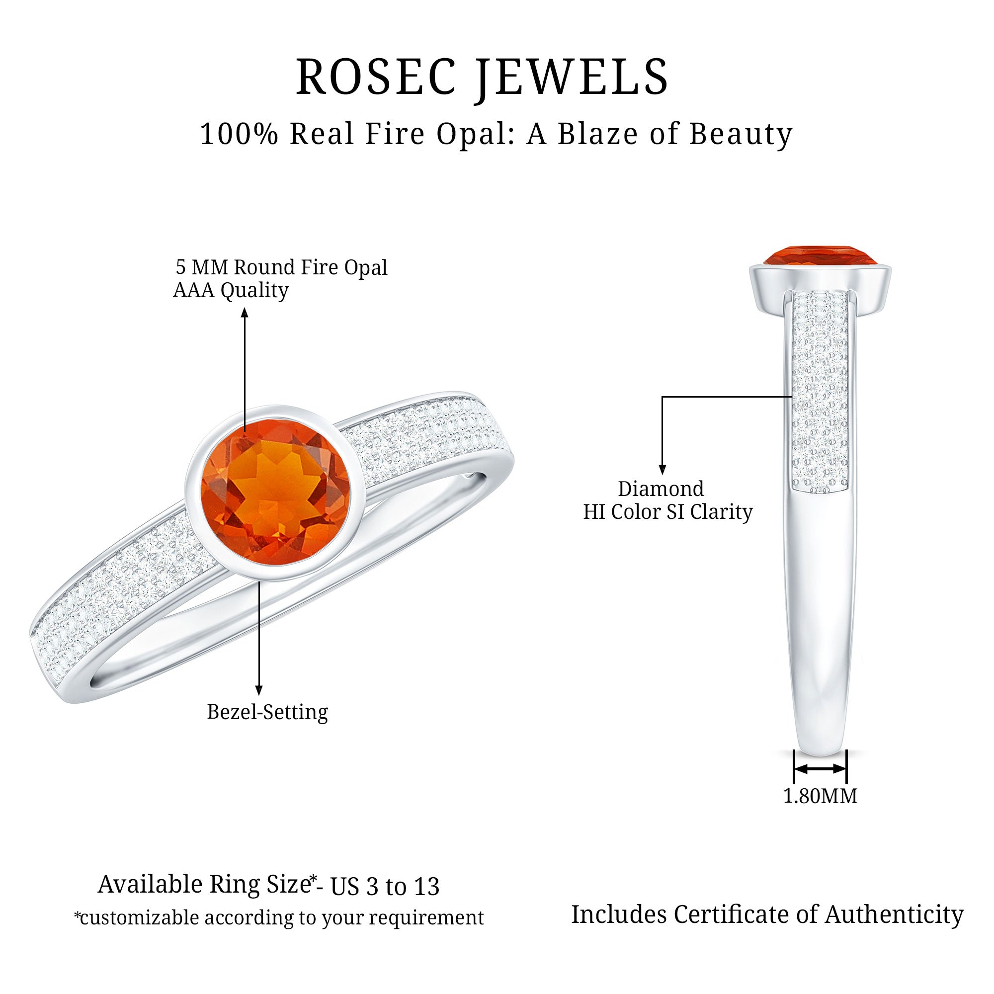 3/4 CT Round Shape Fire Opal Engagement Ring with Diamond