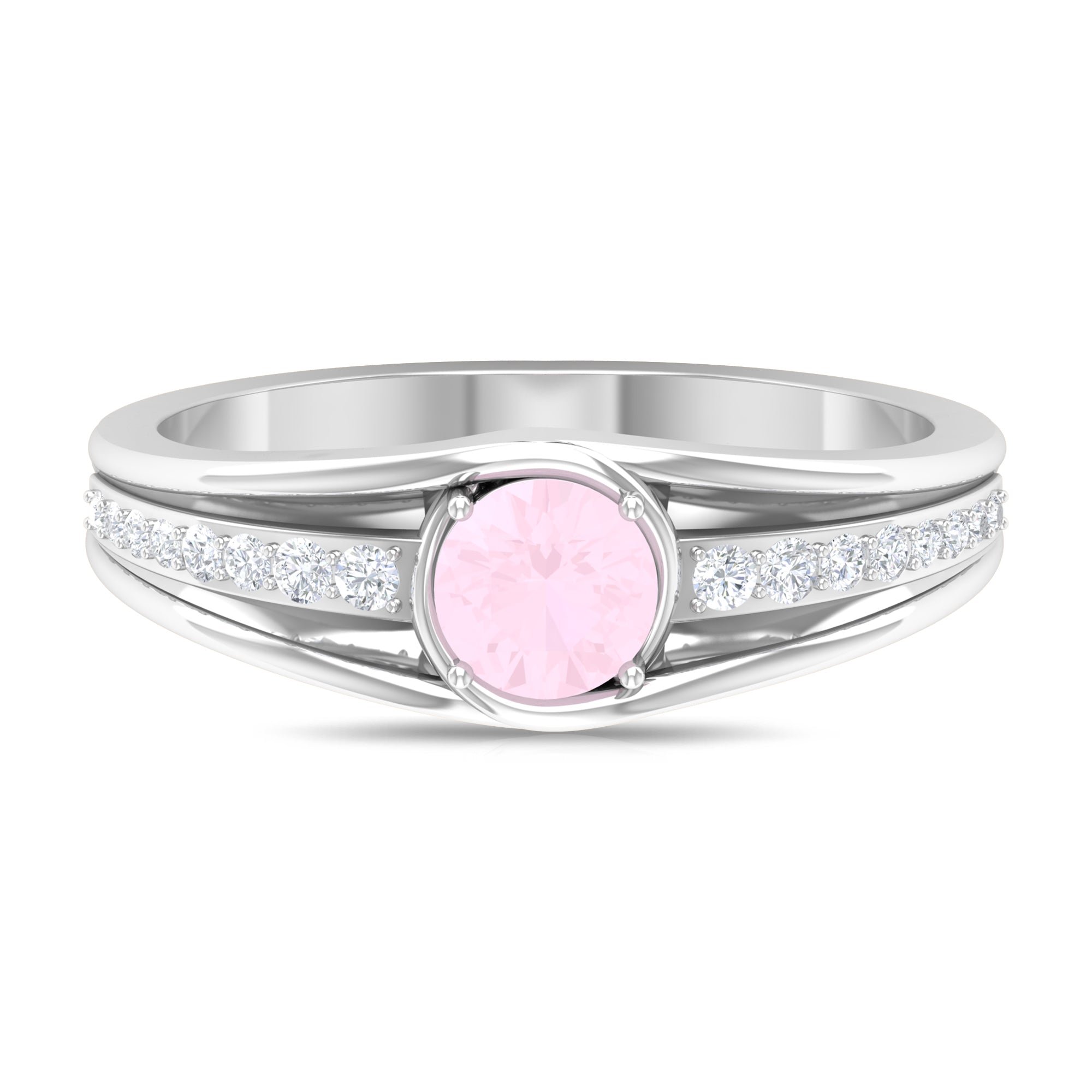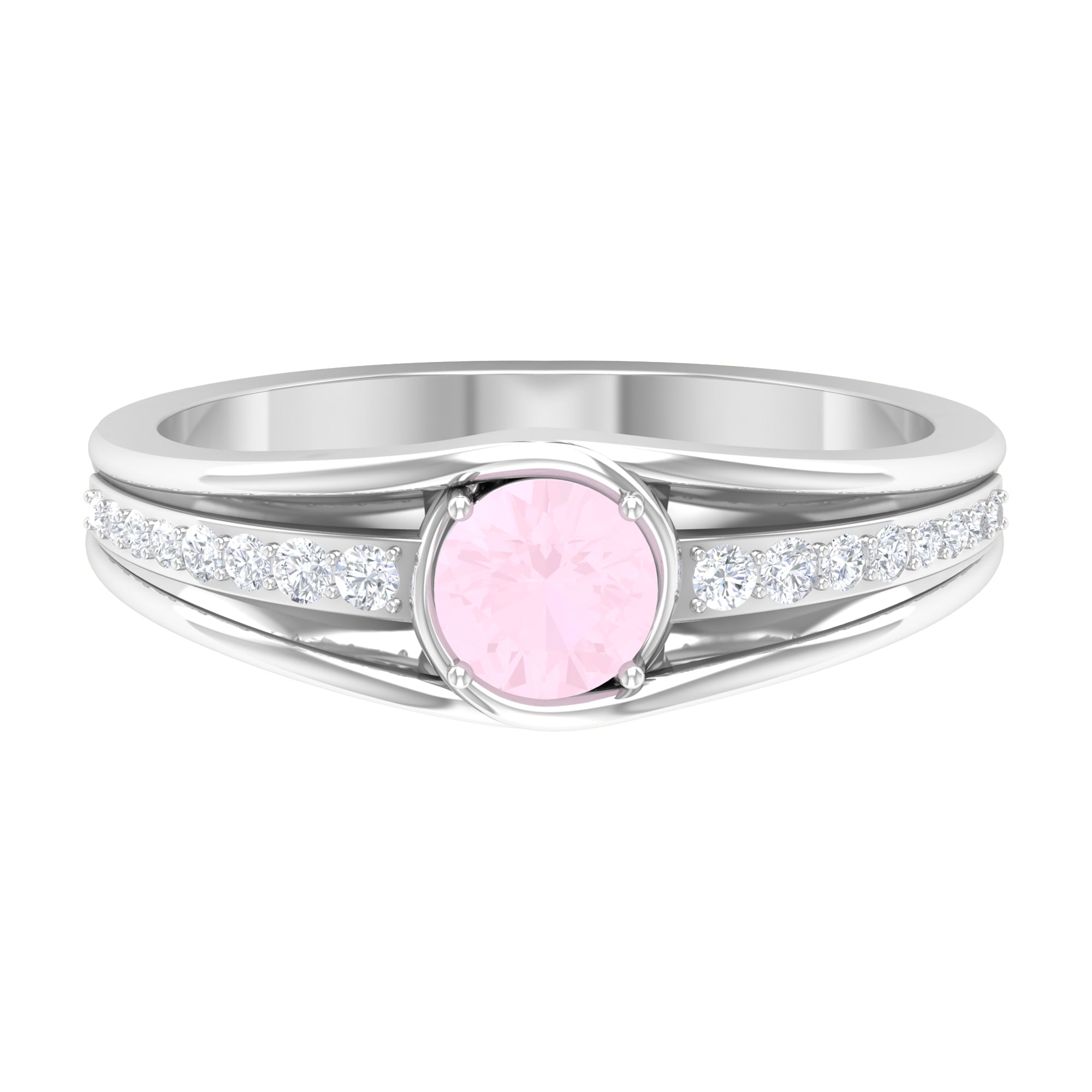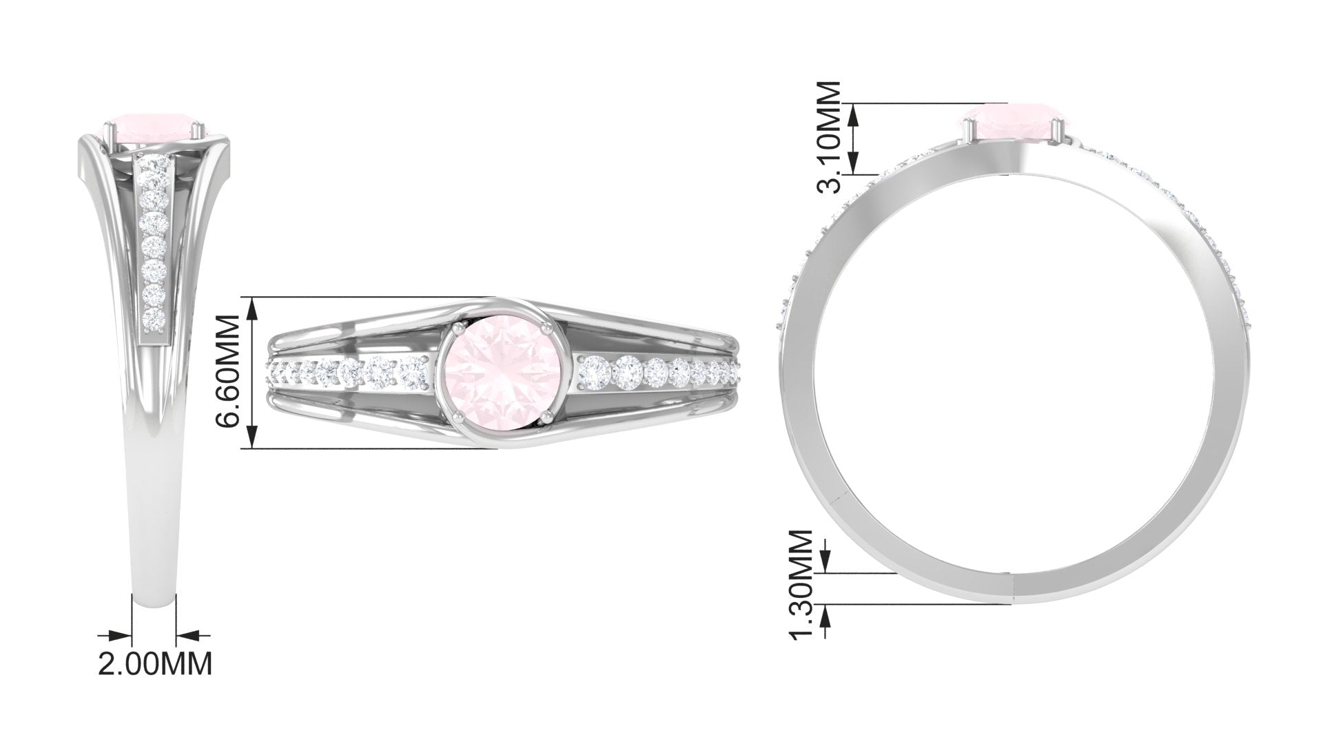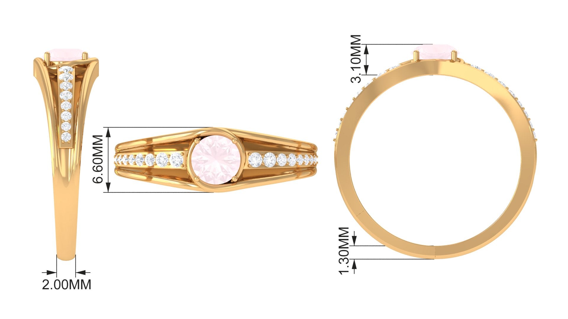 3/4 CT Round Shape Rose Quartz Solitaire Ring with Diamond Side Stones