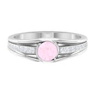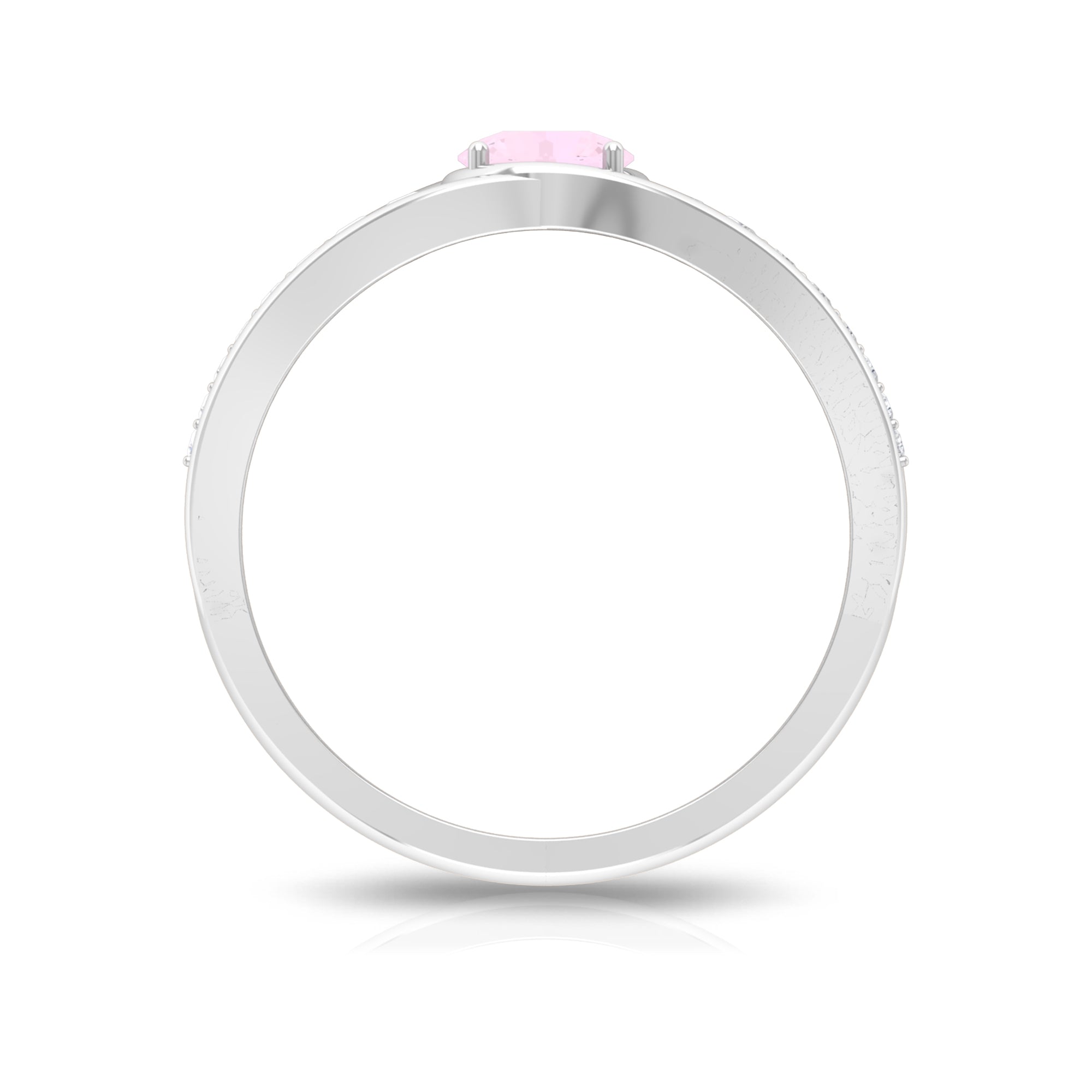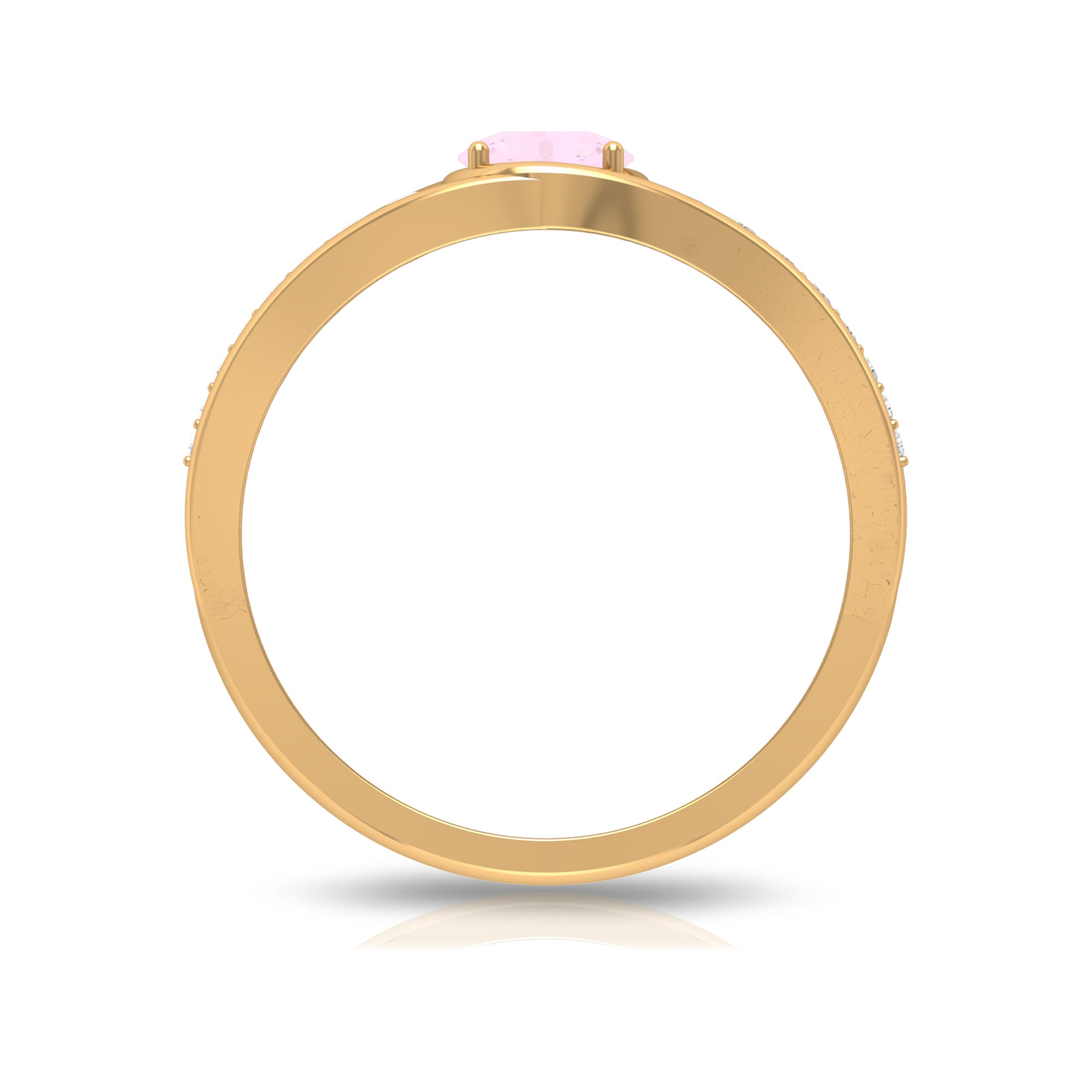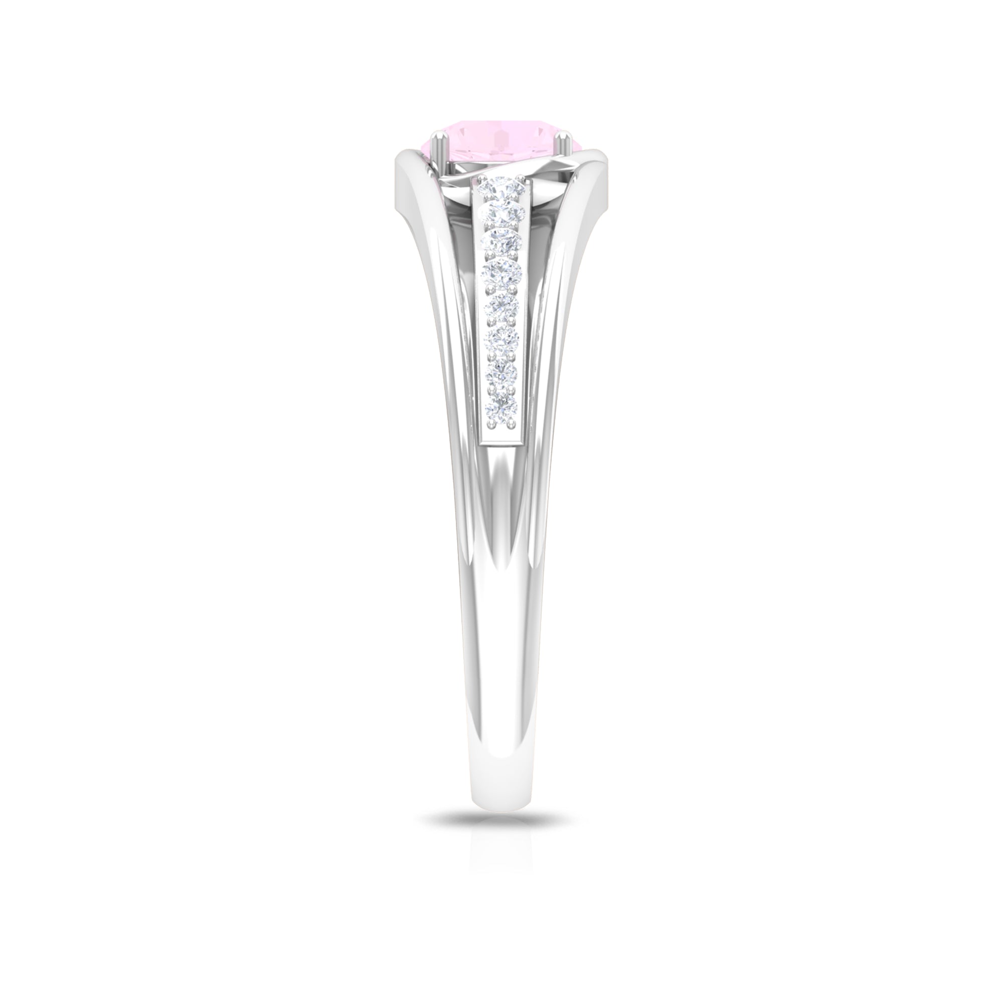 3/4 CT Round Shape Rose Quartz Solitaire Ring with Diamond Side Stones