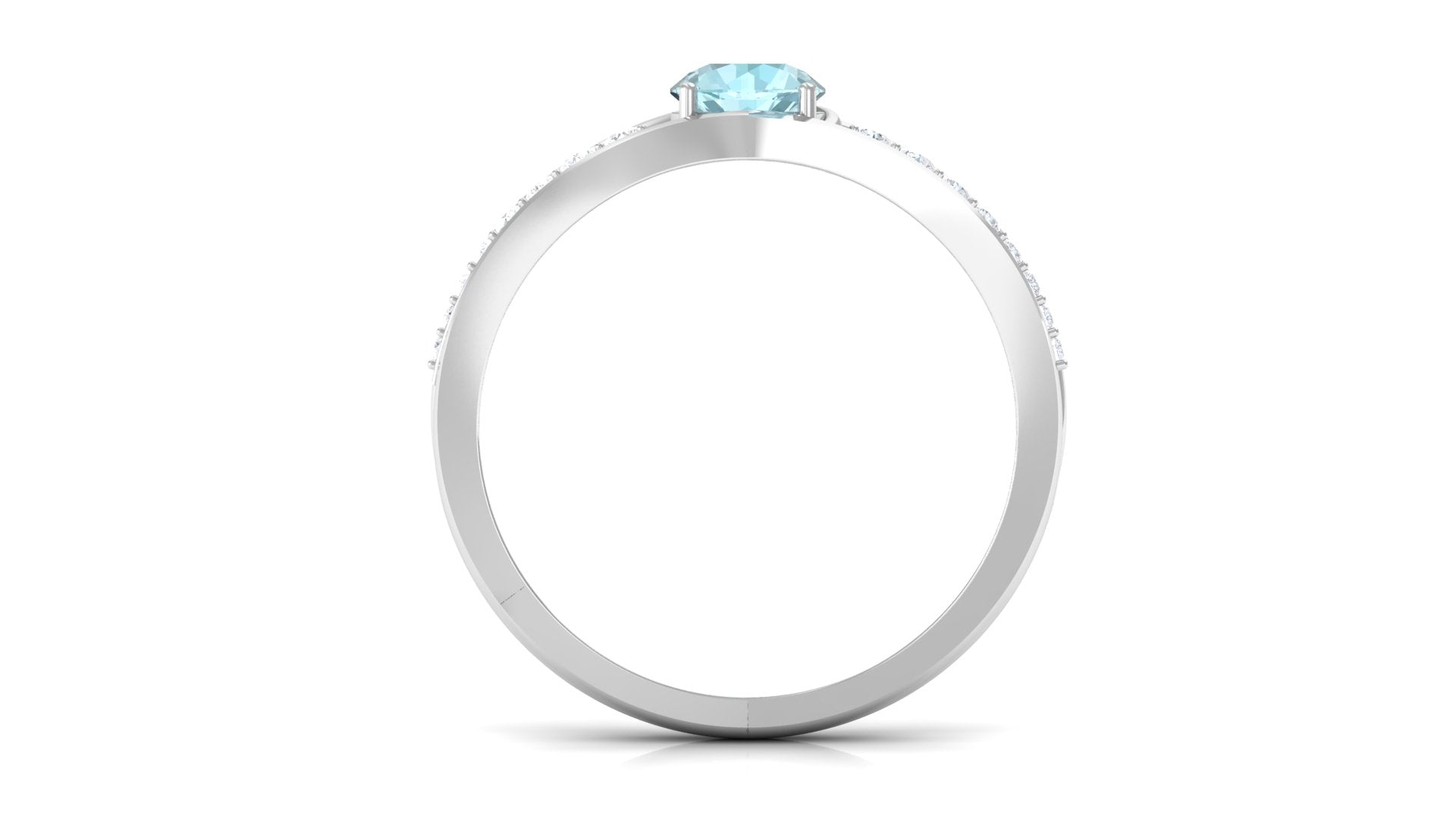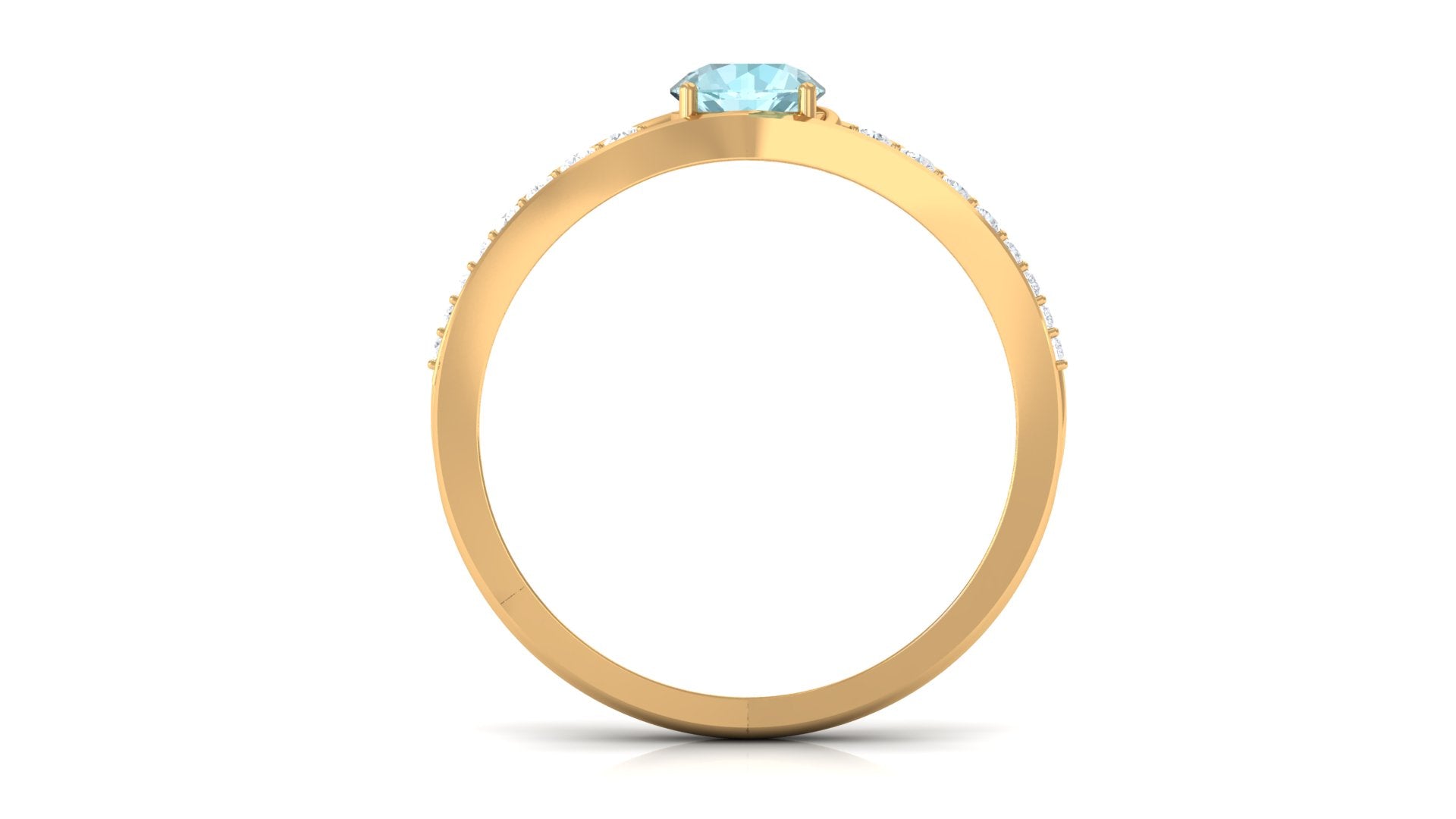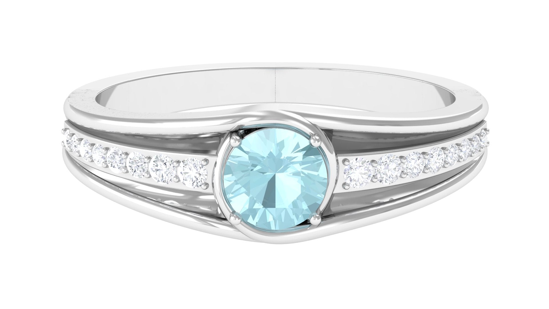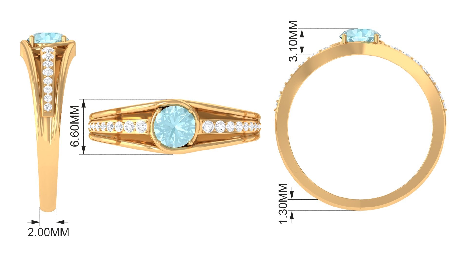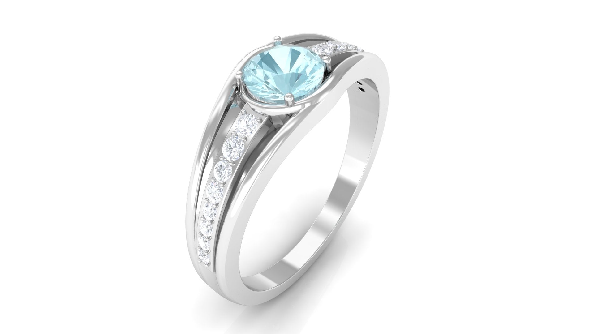 3/4 CT Round Shape Sky Blue Topaz Solitaire Ring with Diamond Side Stones