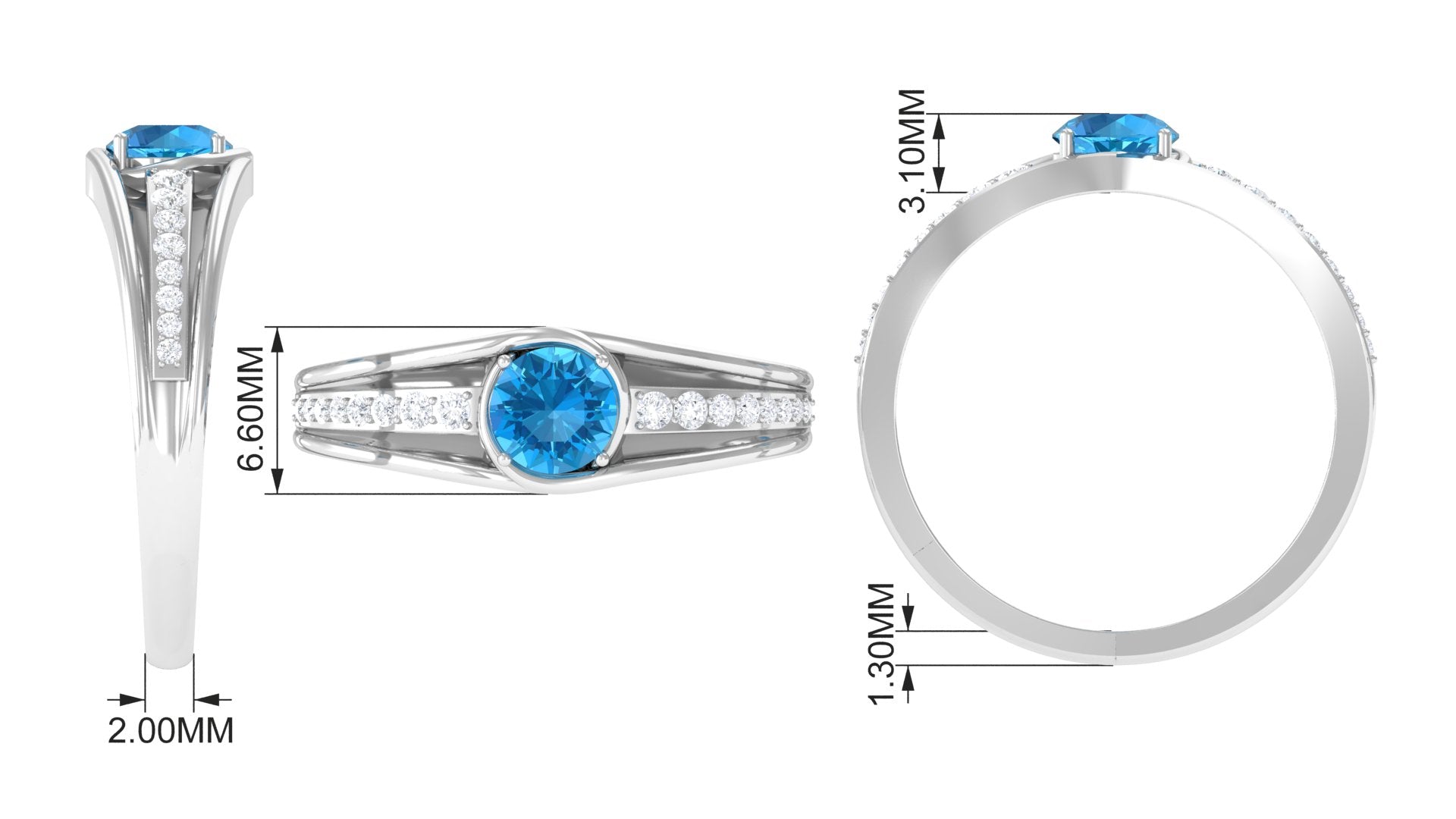 3/4 CT Round Shape Swiss Blue Topaz Solitaire Ring with Diamond Side Stones
