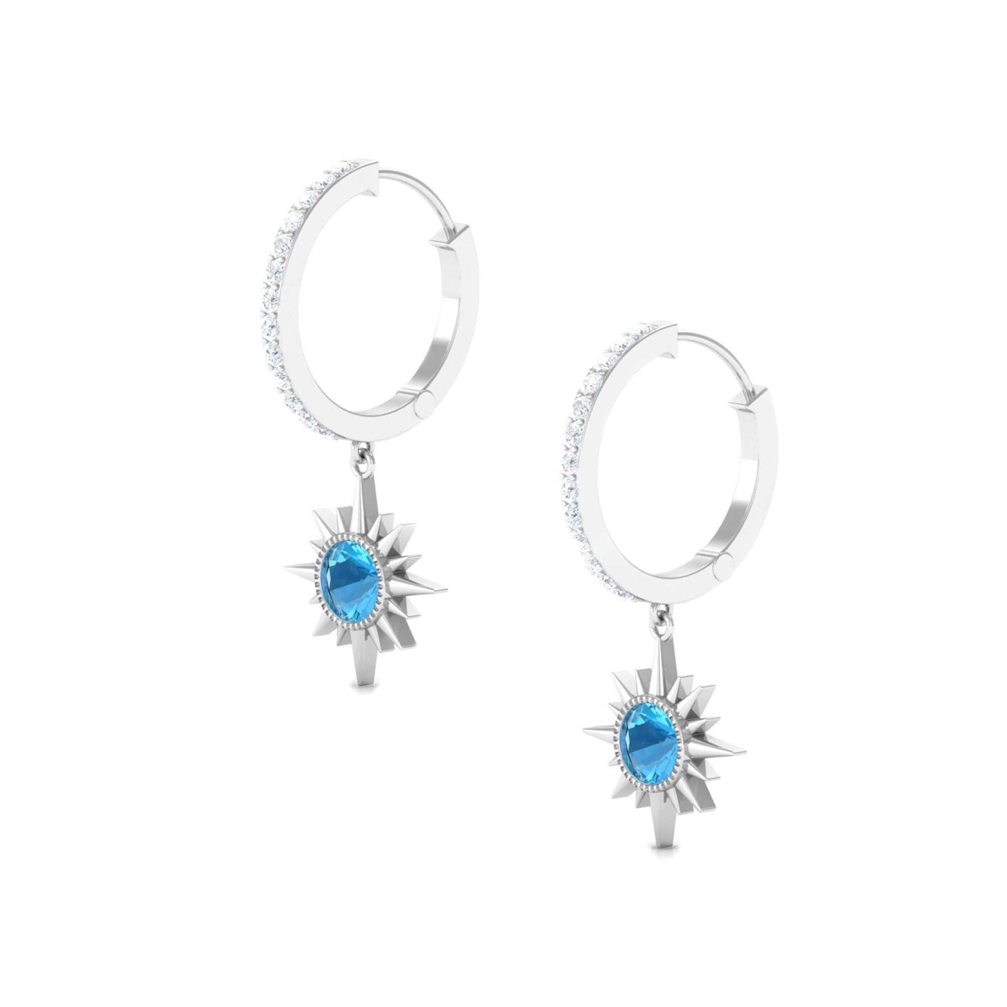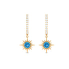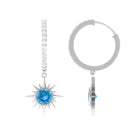 3/4 CT Swiss Blue Topaz and Diamond Sunburst Hoop Earrings