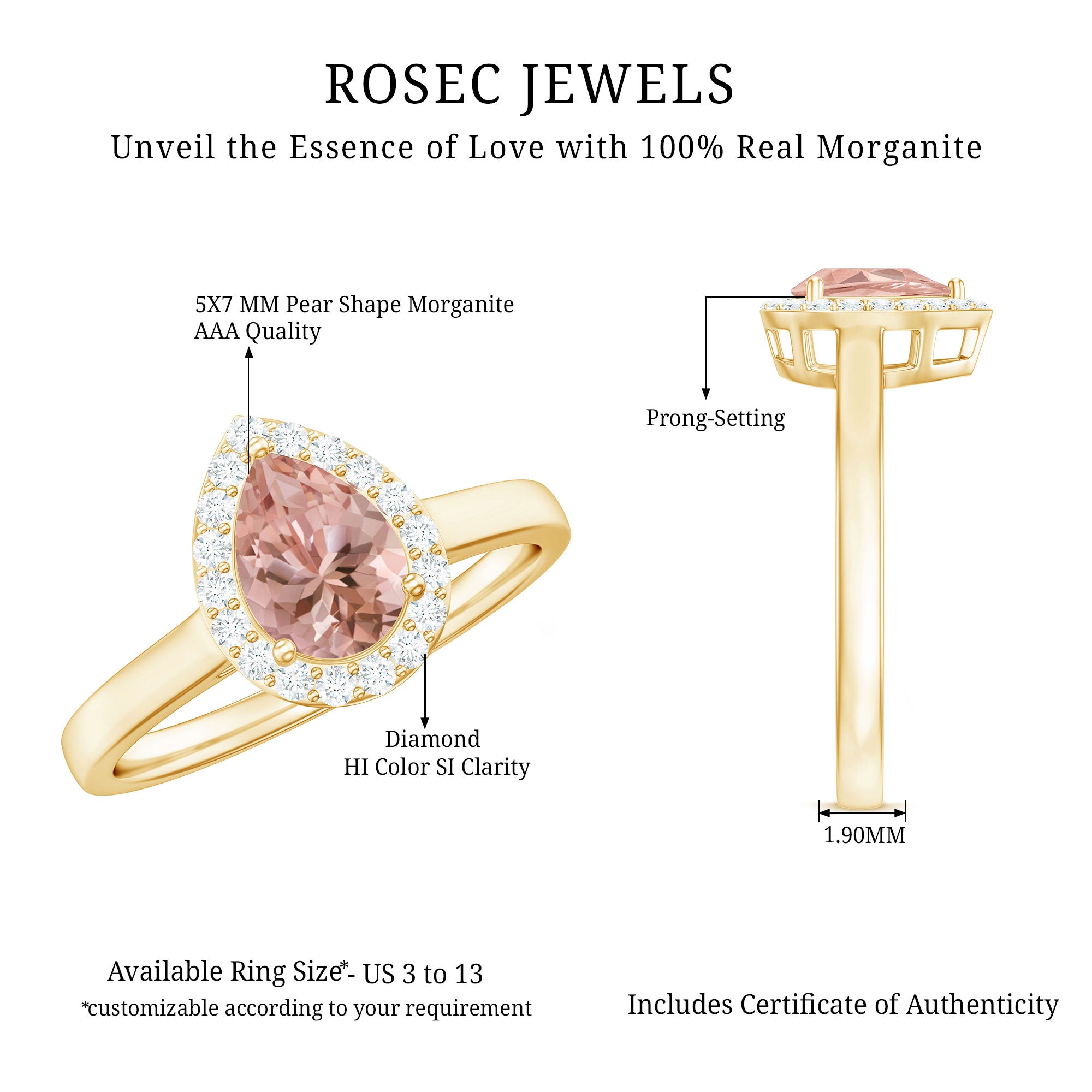 This Morganite Ring is simple and delicate jewelry for your better half. It features Pear Cut Morganite with Diamond Accented on Morganite Diamond Ring. Crafted in Solid Gold on Teardrop Ring. This Diamond jewelry is perfect to be worn on any occasion.