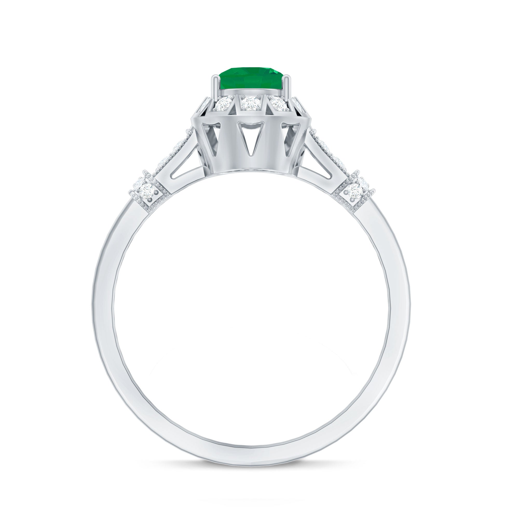 3/4 CT Vintage Inspired Emerald Engagement Ring with Diamond