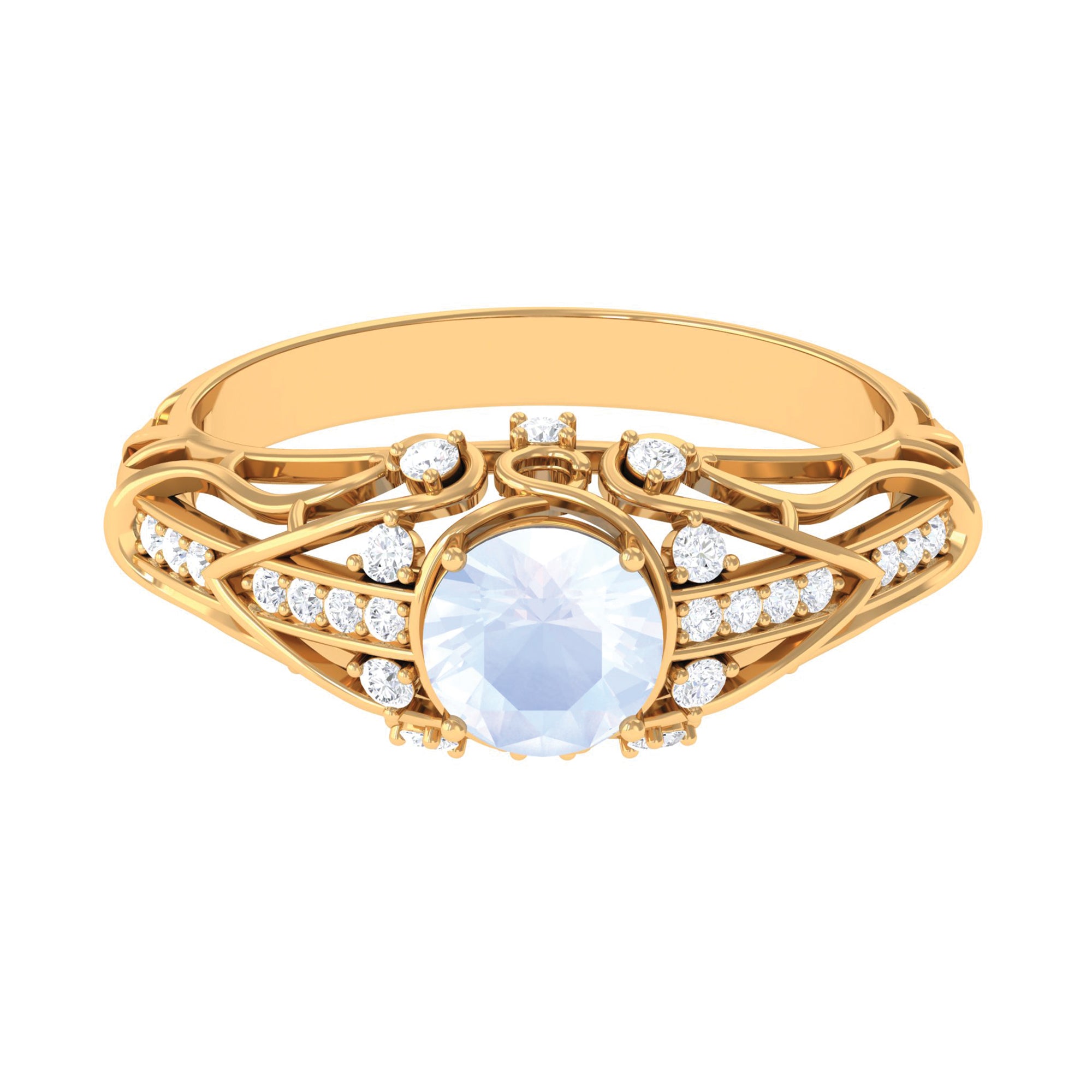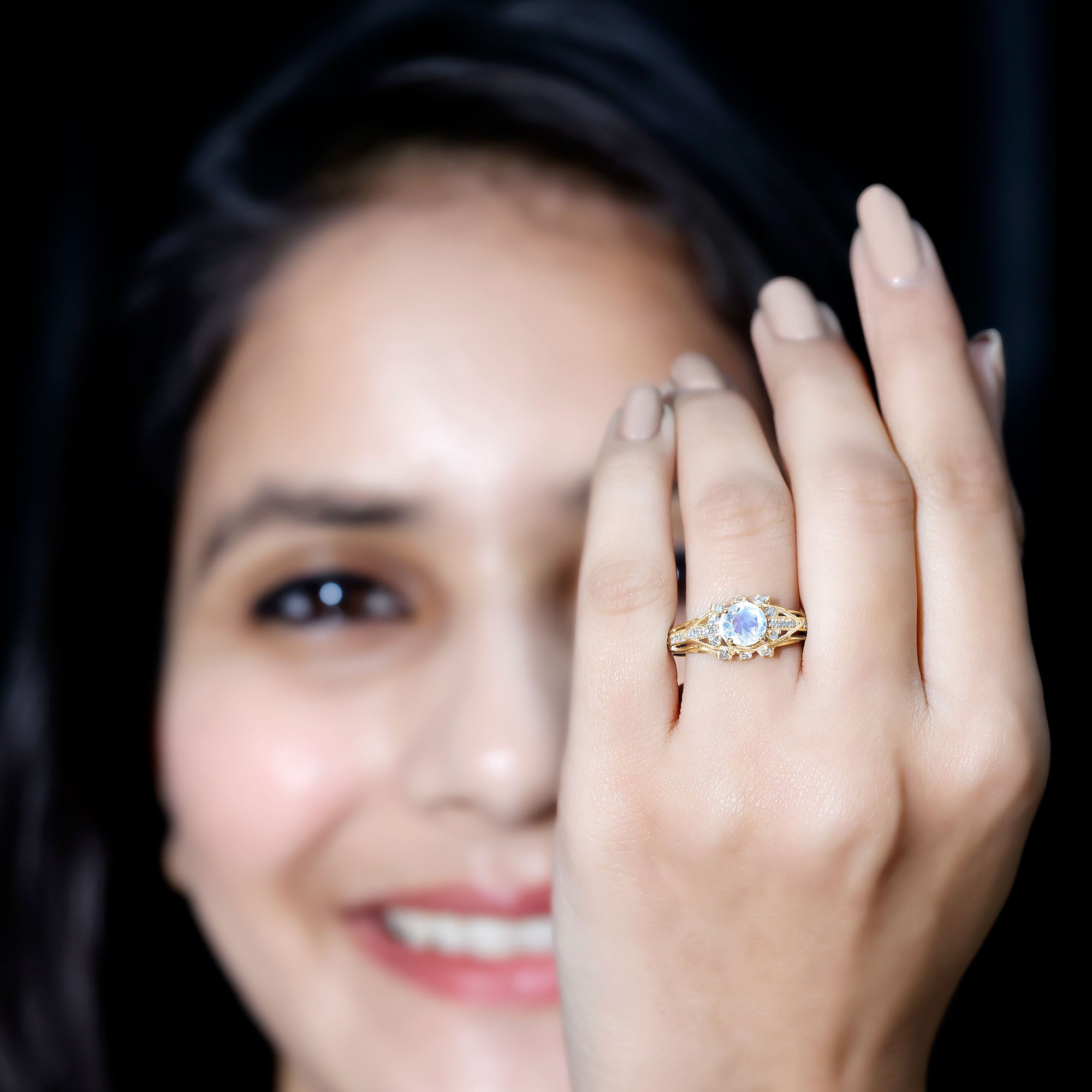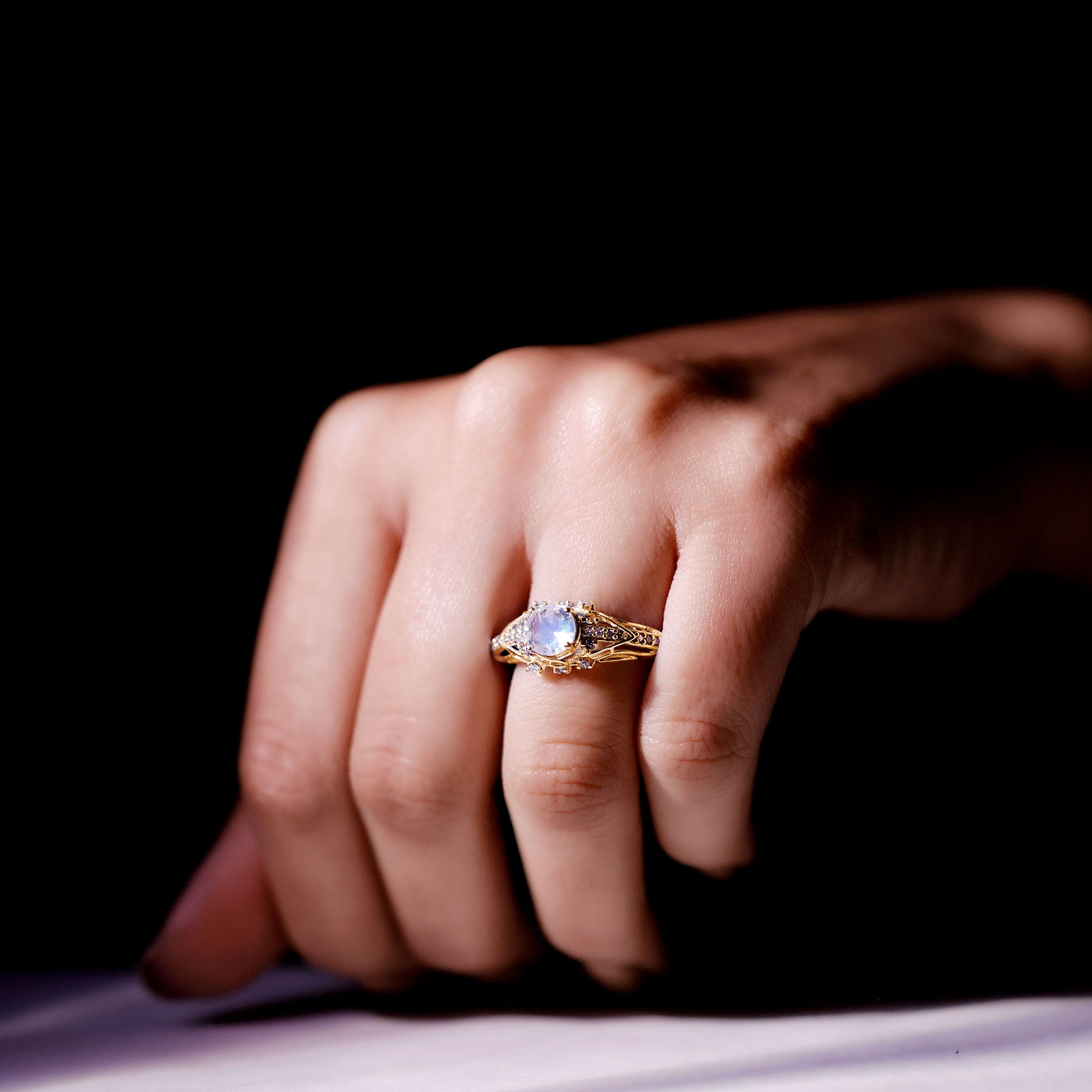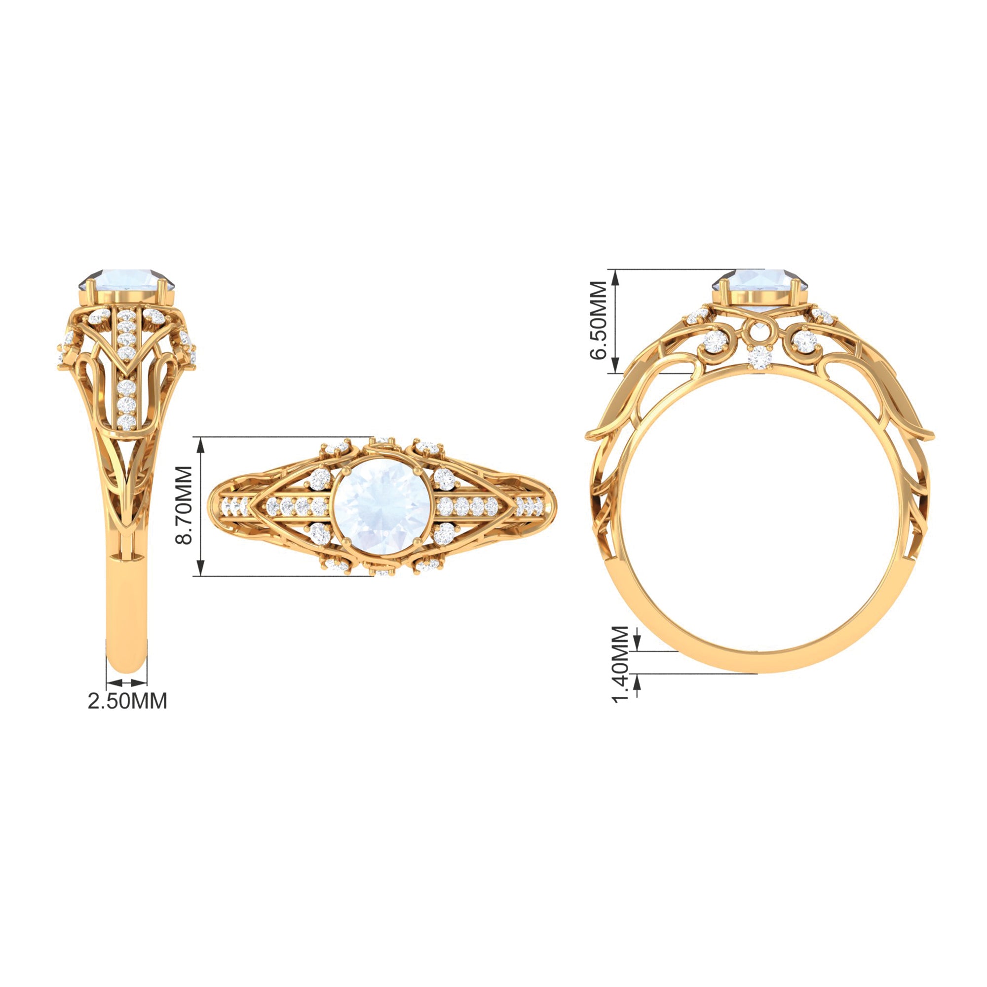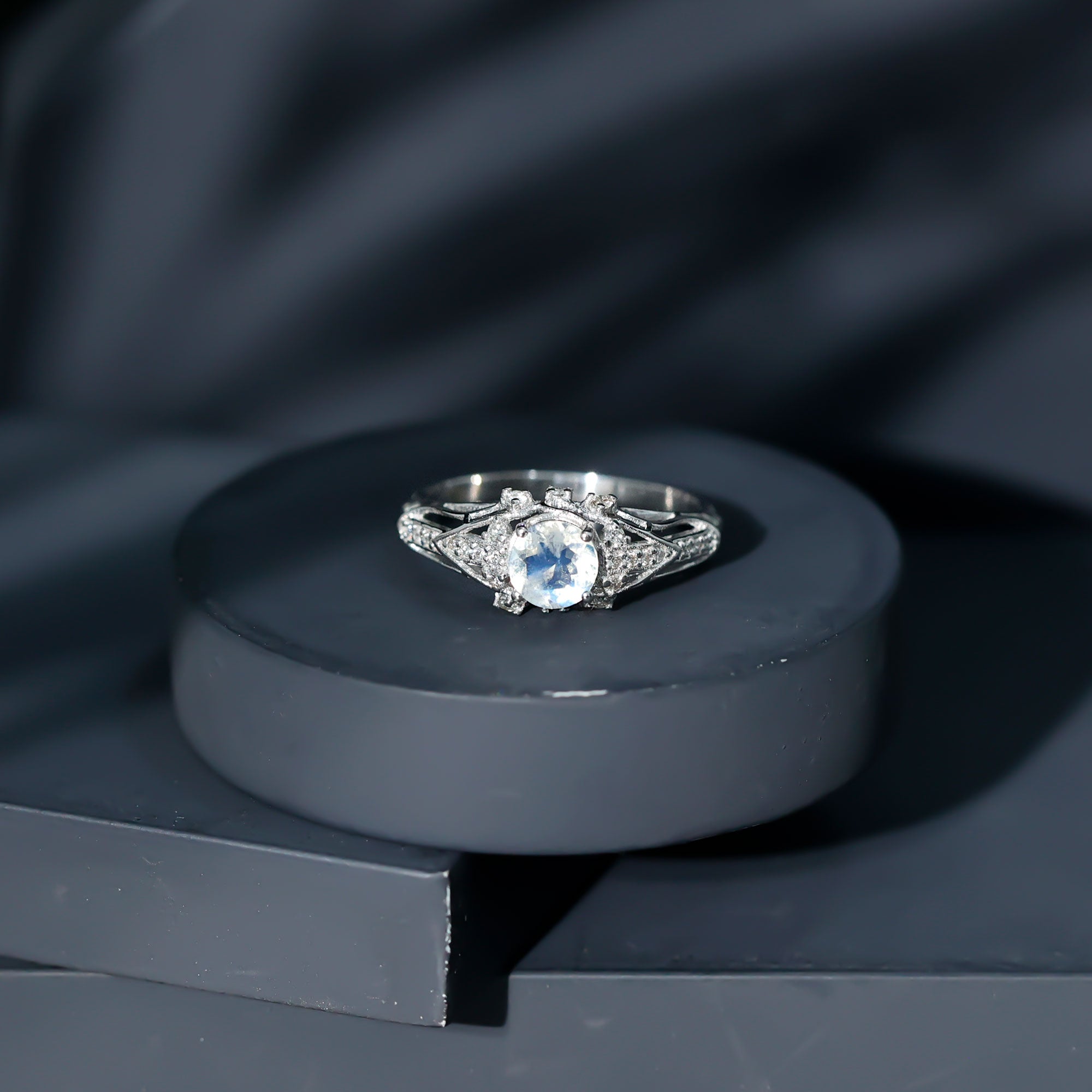 3/4 CT Vintage Moonstone Engagement Ring with Diamond