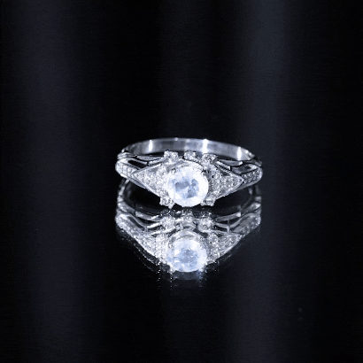 Every moment of yours is worth celebrating, so why not celebrate it with an alluring fine jewelry. This Moonstone Engagement Ring is exactly what your are looking for your partner, Round Moonstone is held in Prong Setting while Round Diamond are arranged distinctively, forming a perfect Vintage Engagement Ring . Show your love to your partner with this Art Deco Moonstone Ring.