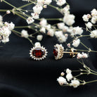 3.5 CT Classic Garnet Stud Earrings with Moissanite Halo