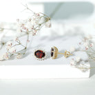 Surprise her on your anniversary with this Lovely and Classic Oval Shape Garnet Stud Earring. The centerpiece of this stunning earring is a Solitaire Oval Shape Garnet Gemstone set in a prong setting, encircled by Round Shape Moissanite as halo. Crafted in Gold, this Solitaire Gemstone Stud Earring is sure to make her heart skip a beat.