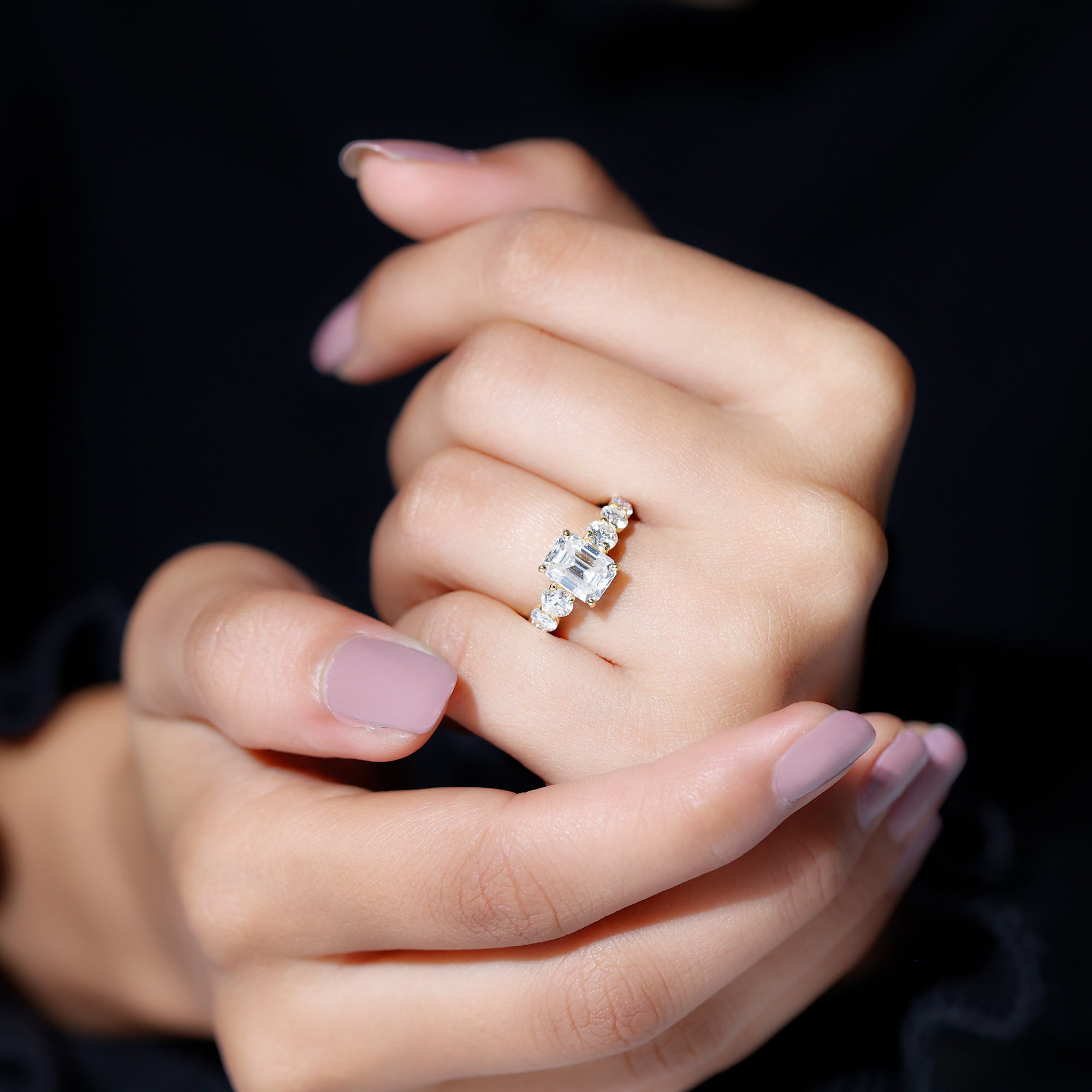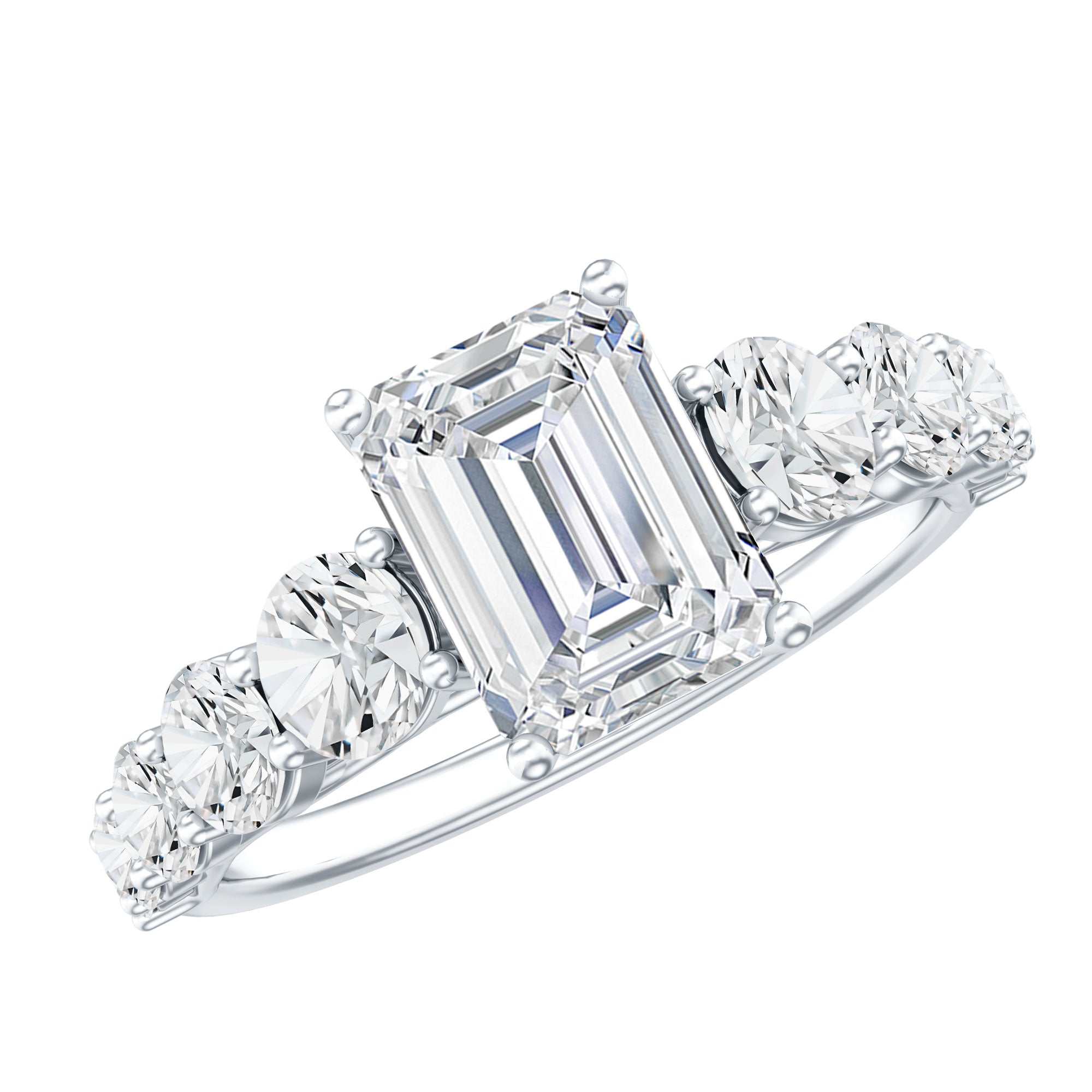 3.5 CT Octagon Cut Moissanite Solitaire Ring with Side Stones