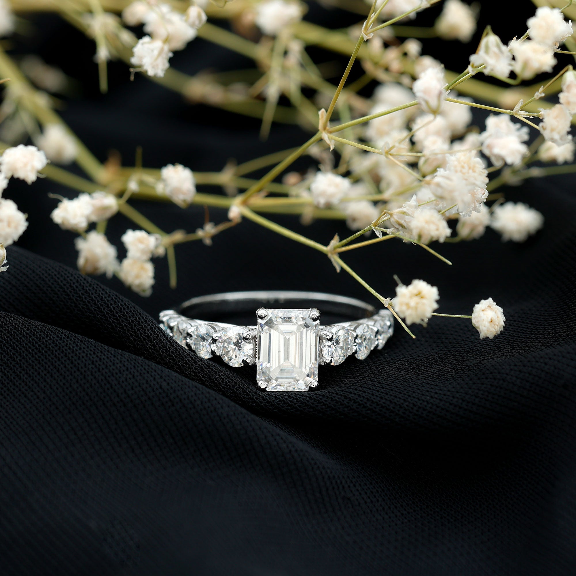 3.5 CT Octagon Cut Moissanite Solitaire Ring with Side Stones