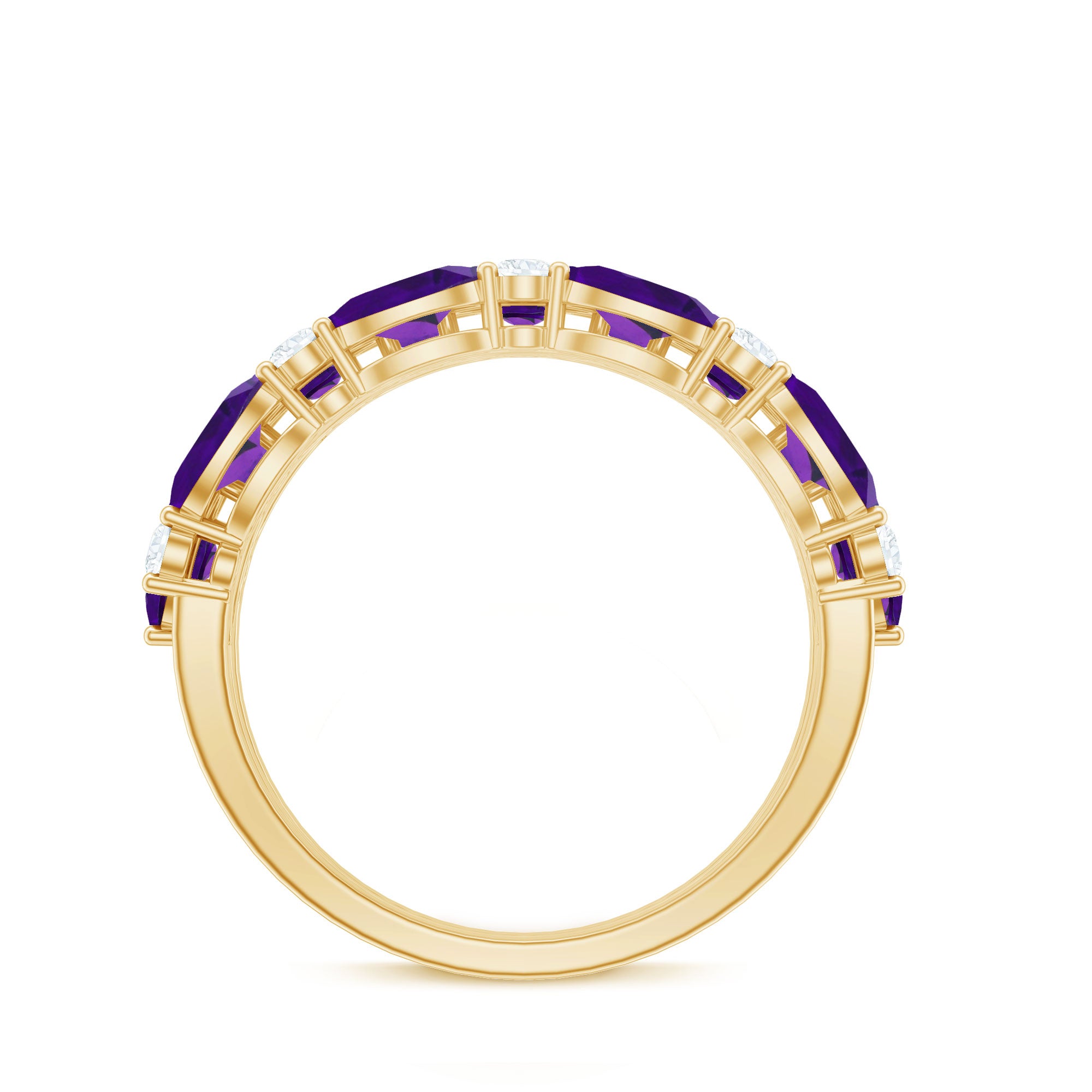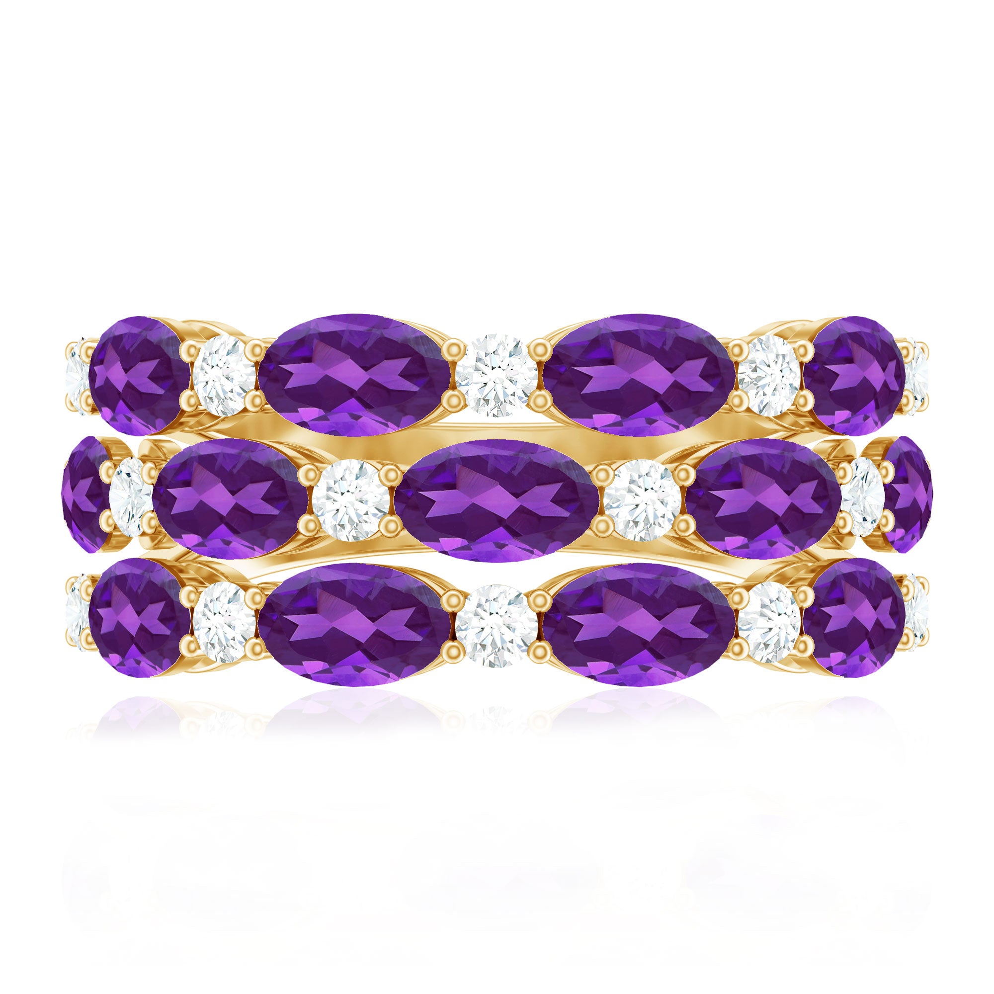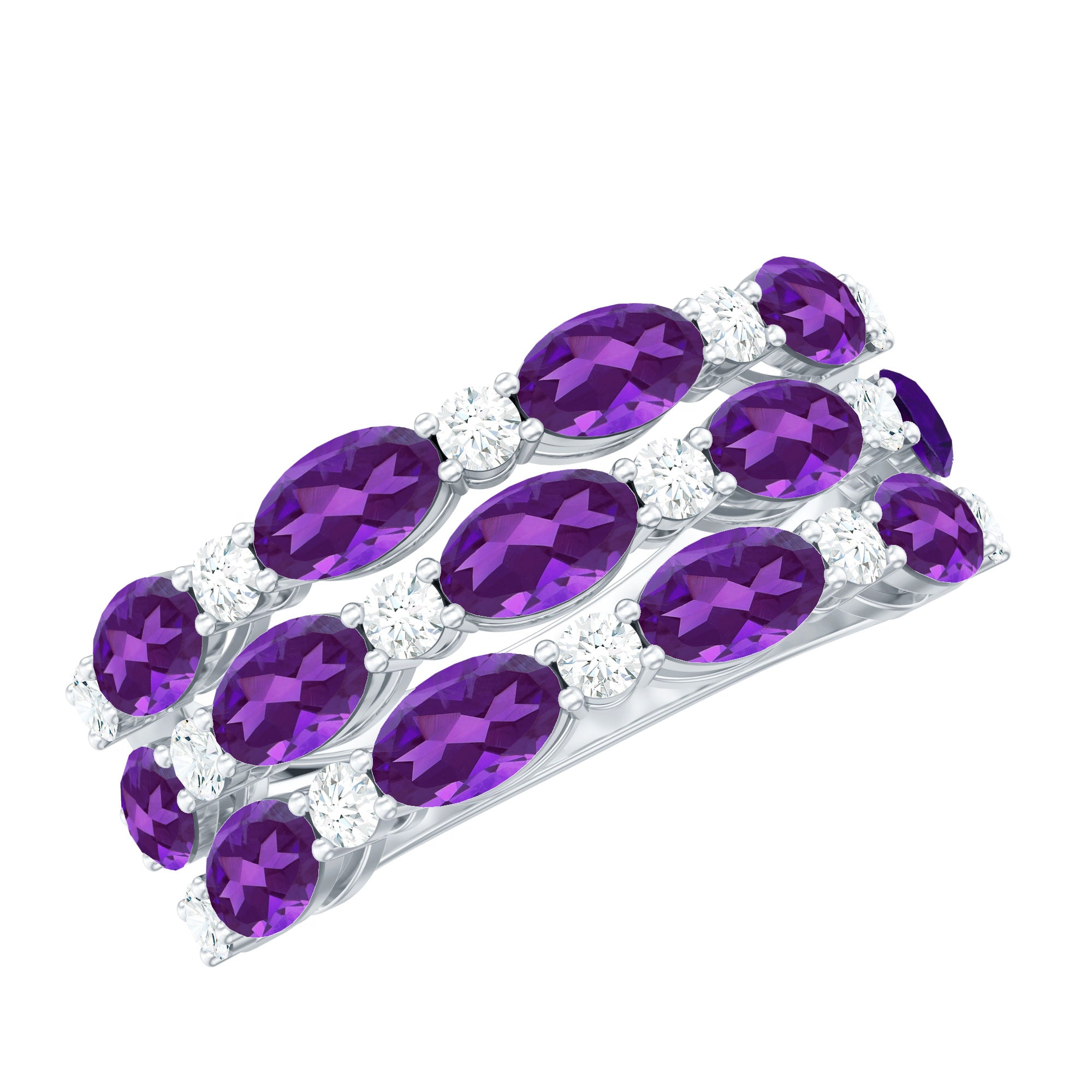 3.50 CT Amethyst and Moissanite Three Row Wedding Band