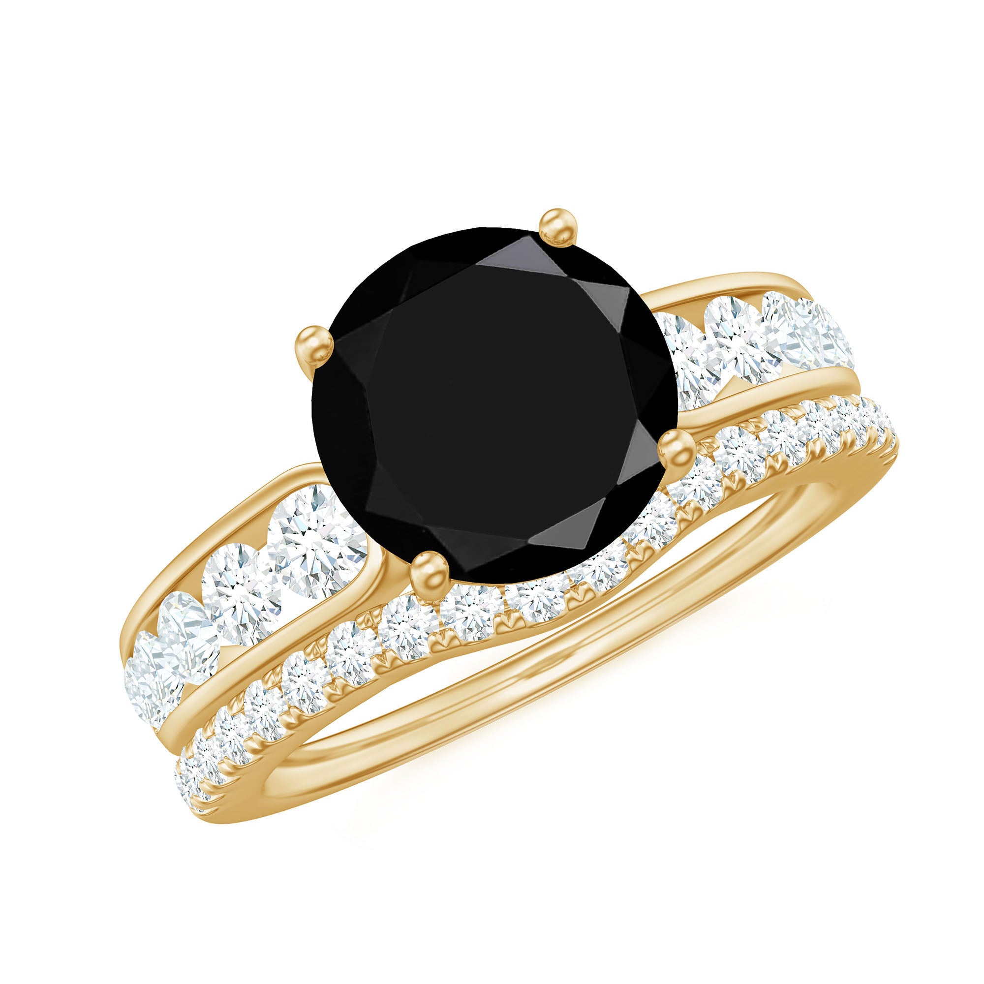 3.50 CT Created Black Diamond Solitaire Ring Set with Moissanite