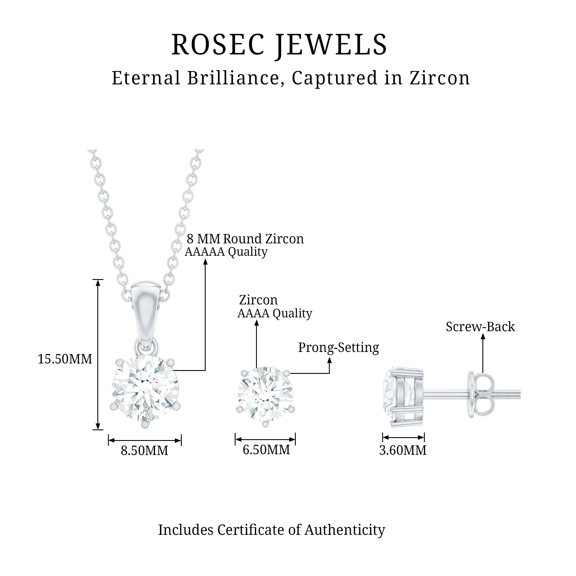 2 CT Zircon Solitaire Pendant and Earrings Set