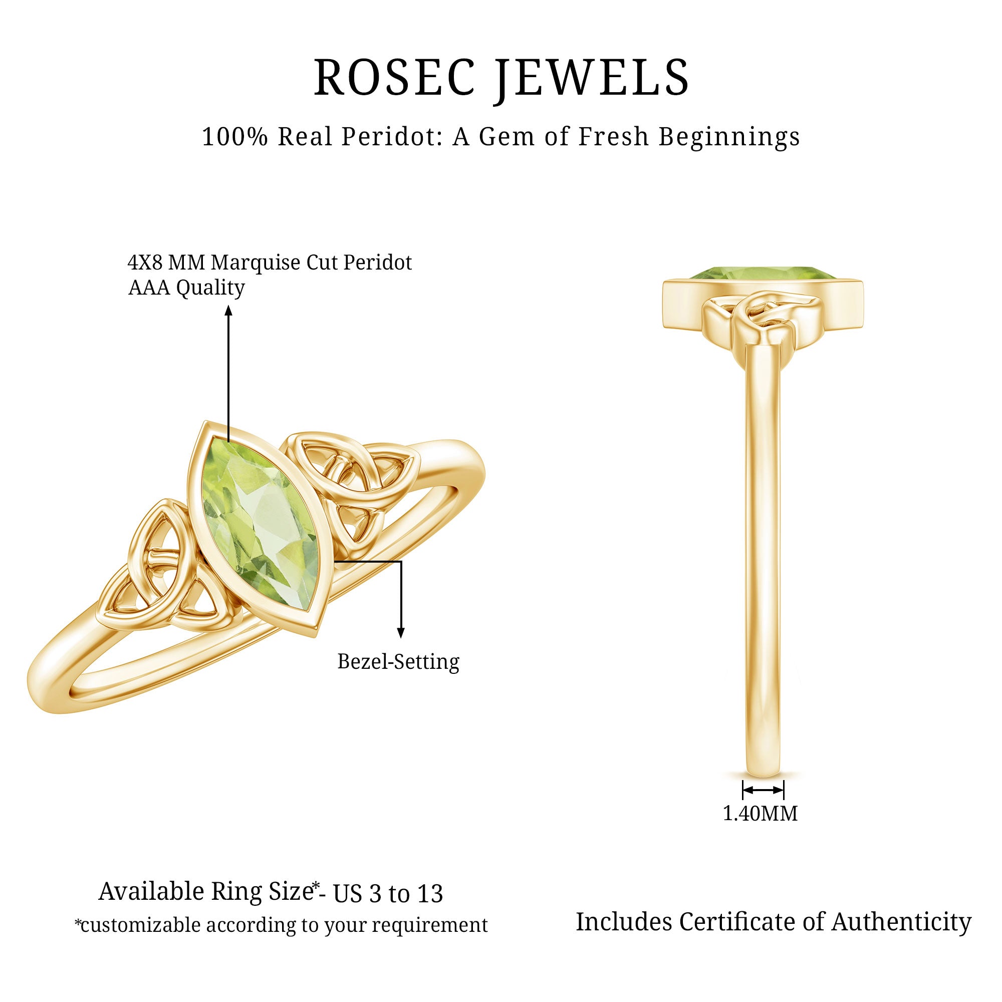 3.5X7 MM Marquise Cut Peridot Solitaire Ring with Gold Celtic Details