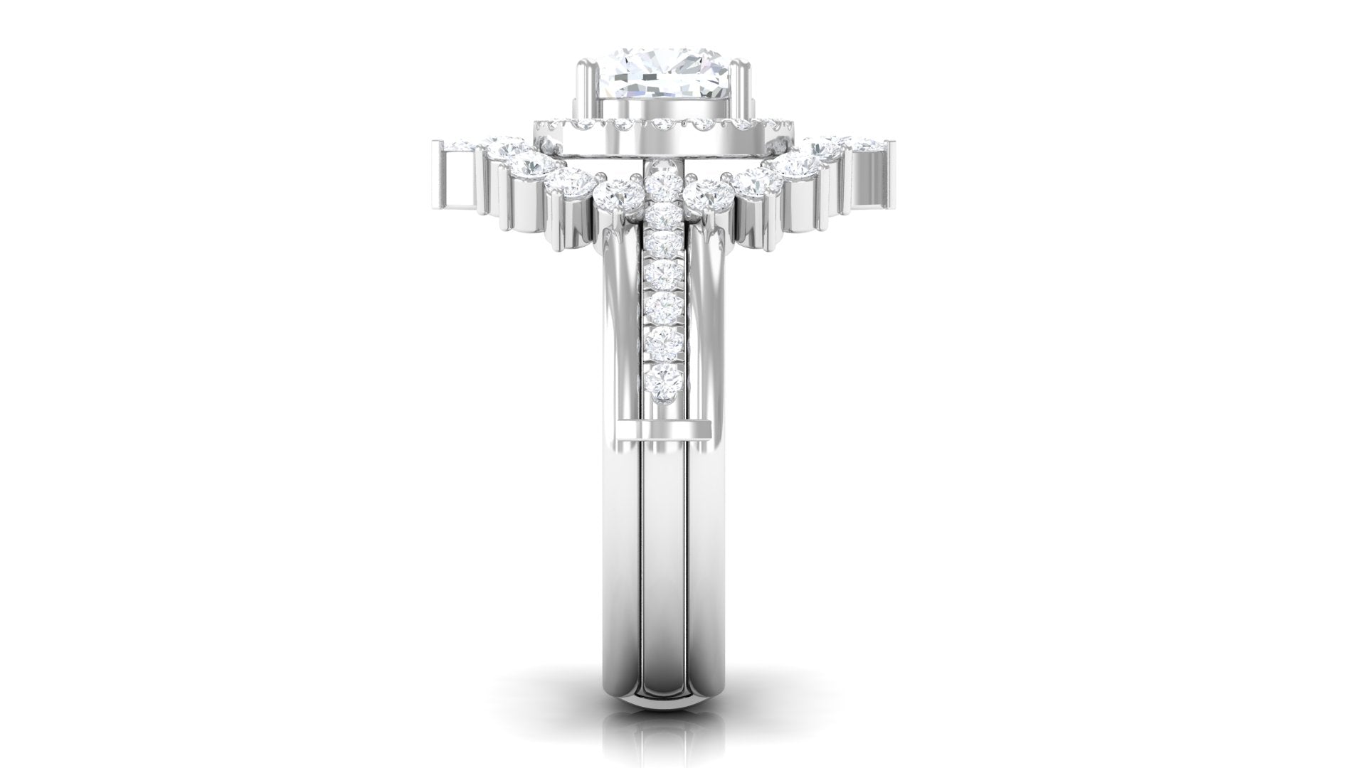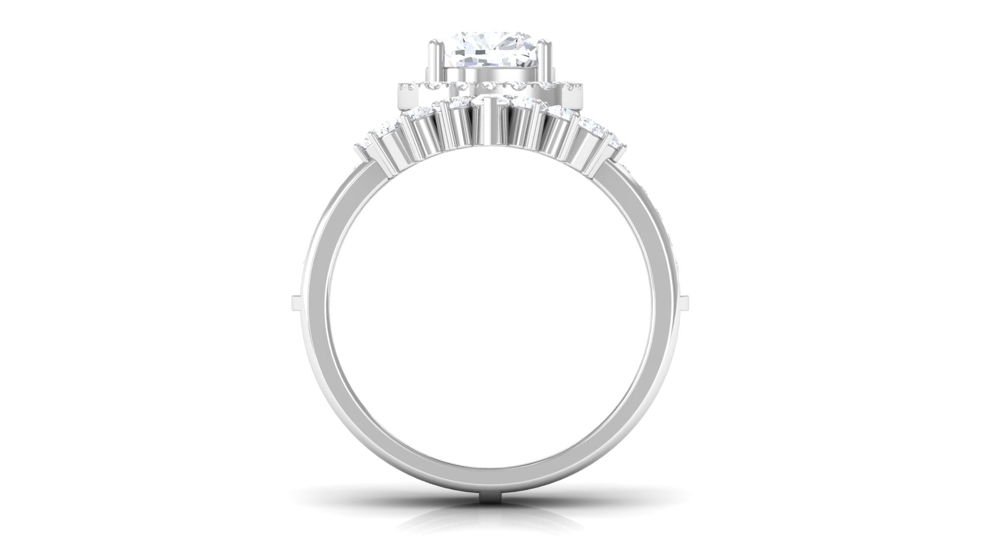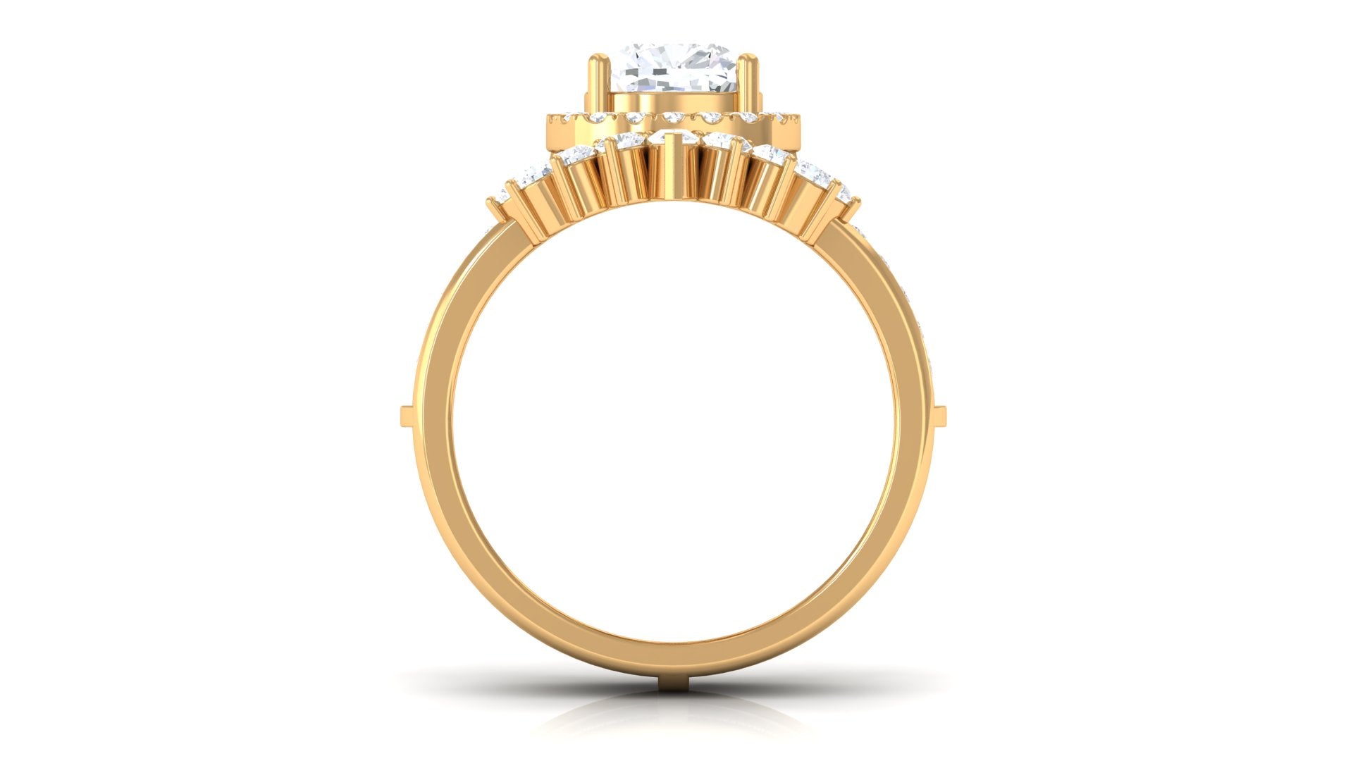 Leave a lasting impression with the exquisite Cubic Zirconia Engagement Ring with Enhancer, a stunning jewelry piece crafted from premium solid gold metal. The centerpiece of this ring features a dazzling cushion cut Zircon stone, expertly set in a secure prong setting and surrounded by a shimmering halo of round Zircon stones. The accompanying Ring Guard Enhancer adds a touch of glamour with its elegant combination of round and pear-shaped Zircon stones. Make a stylish statement of love with this Zircon Wedding Ring Set.