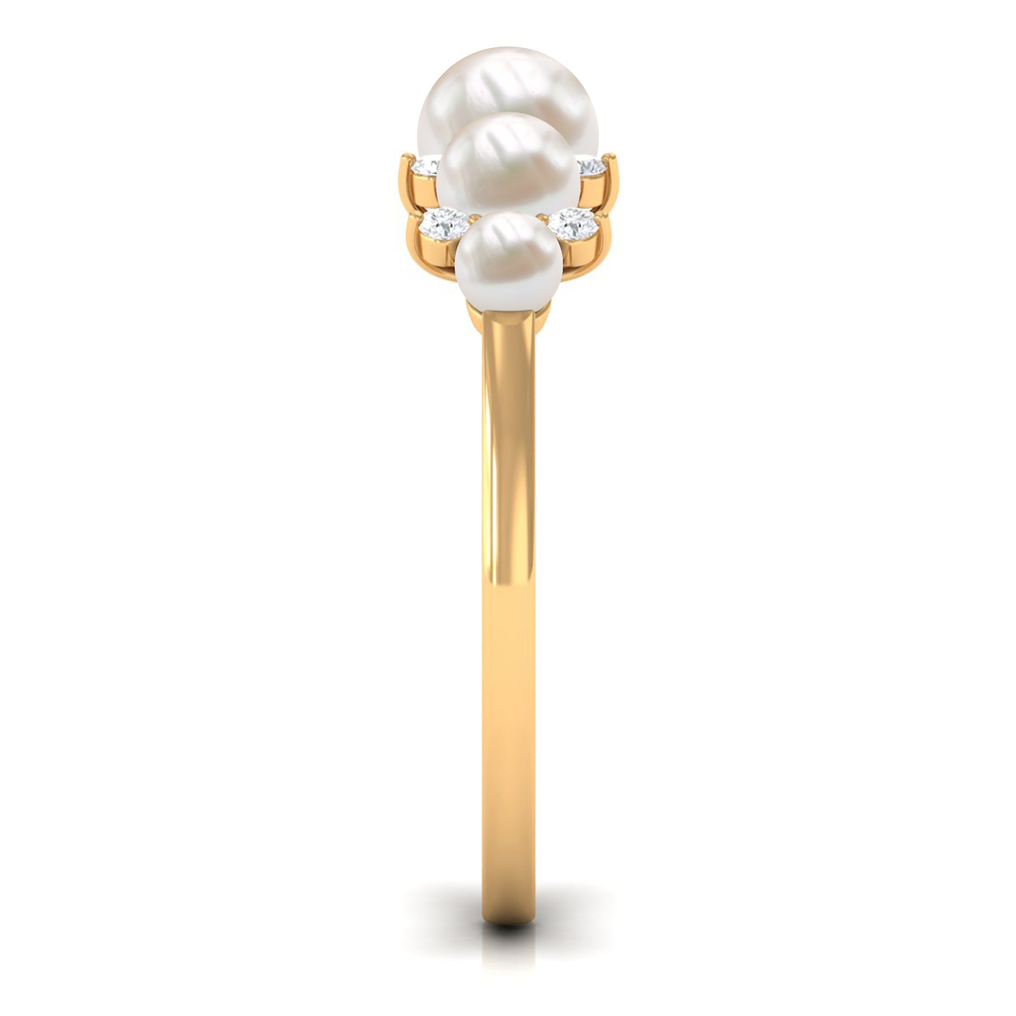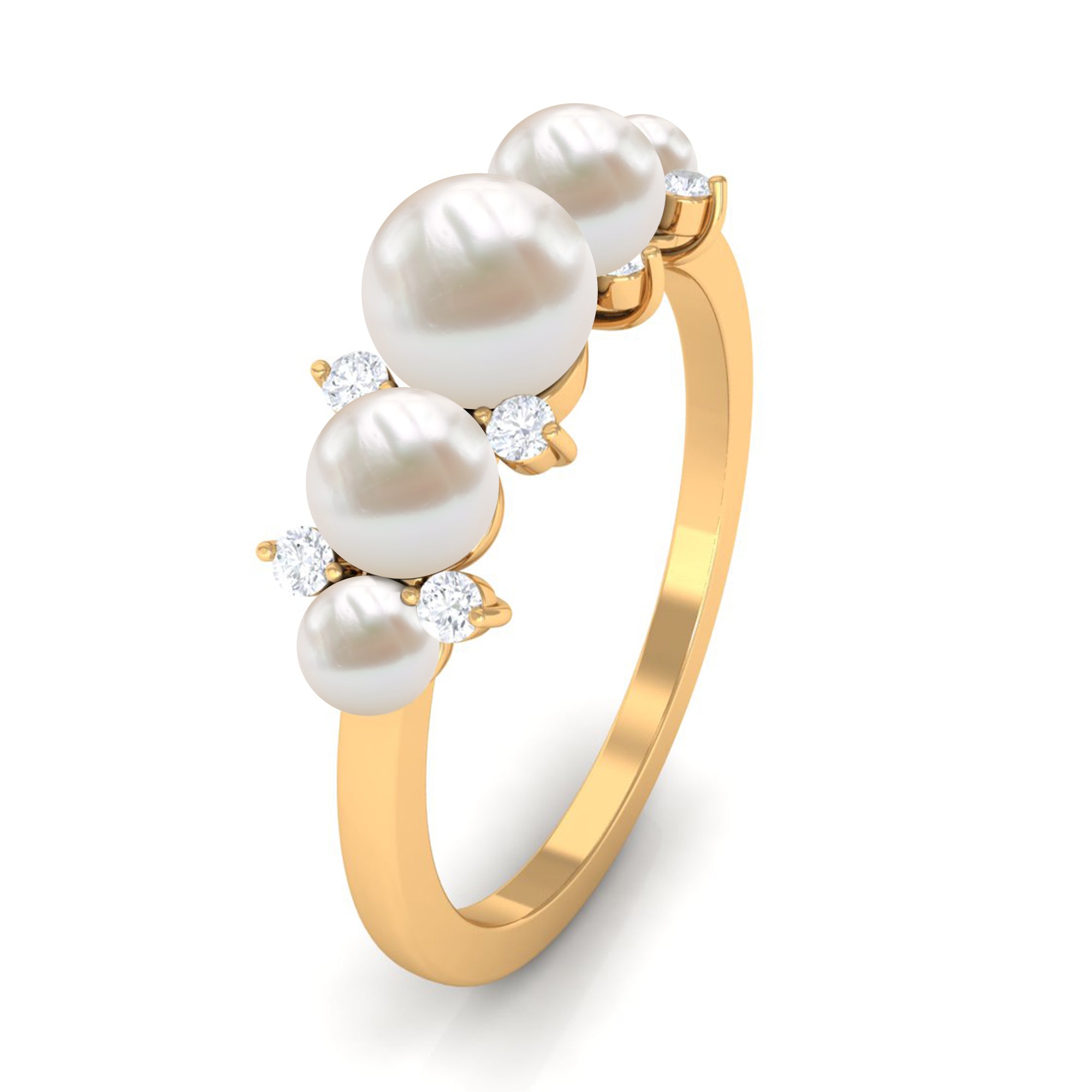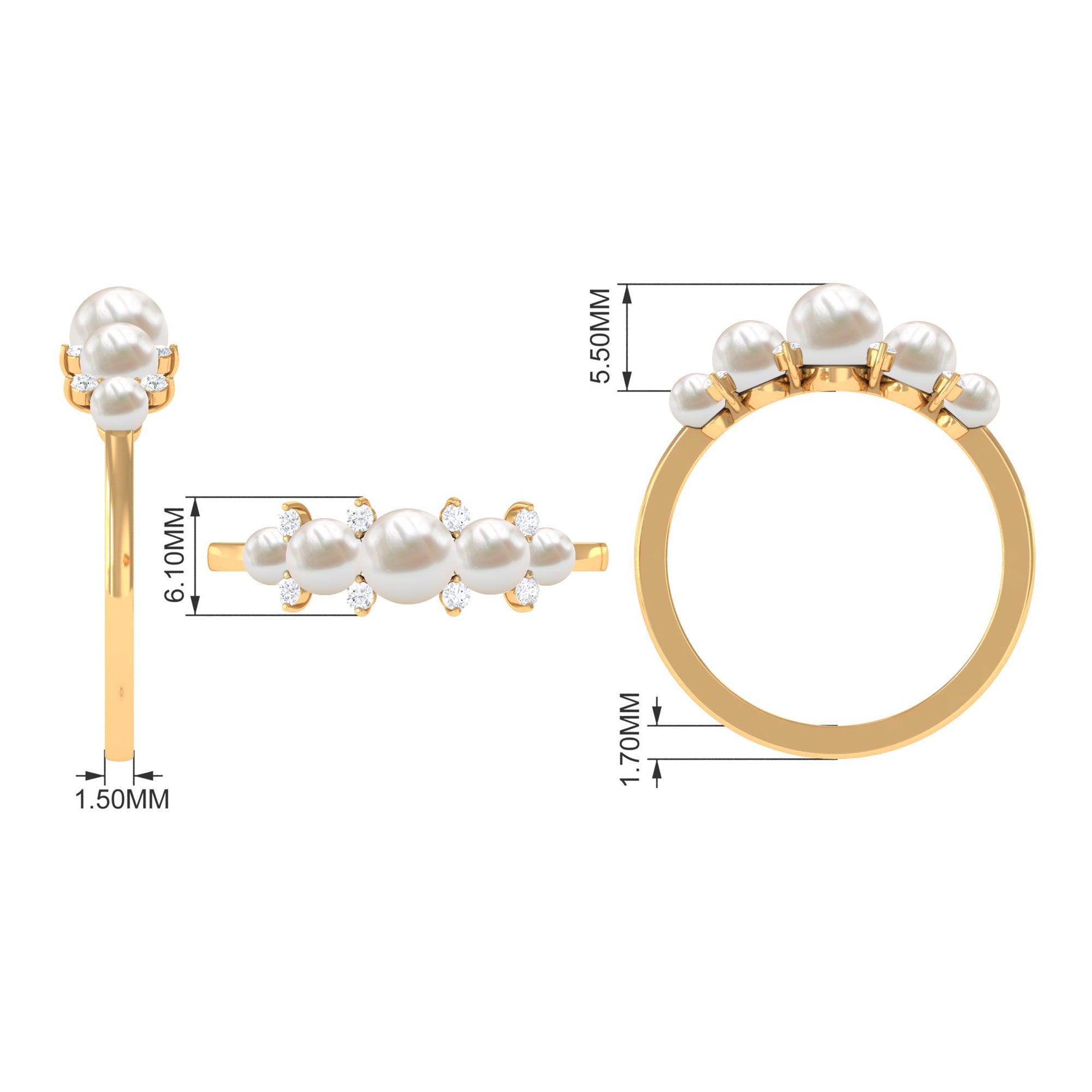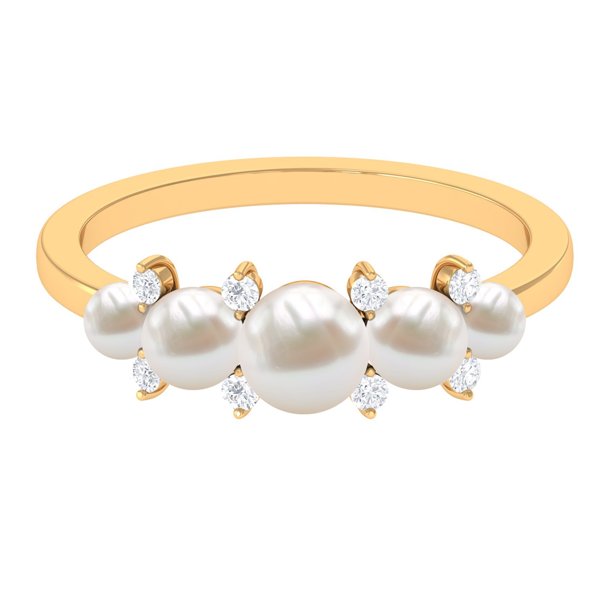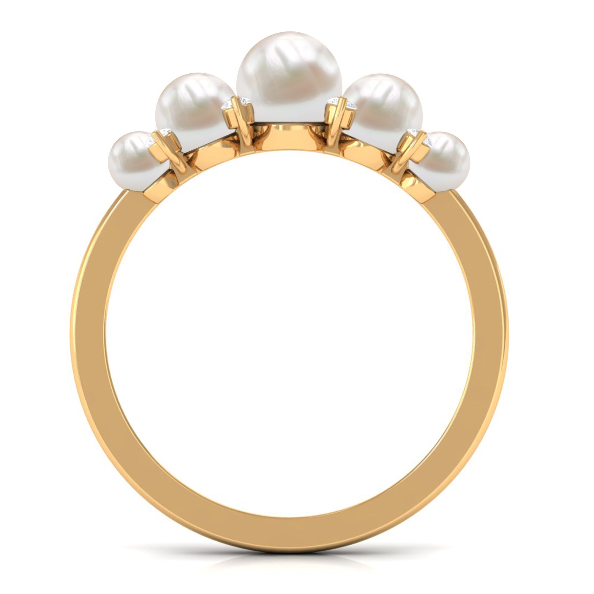 Celebrate the years of togetherness with this exquisite Freshwater Pearl Ring, a testament to your enduring love and shared milestones. Adorned with lustrous Freshwater Pearls and the sparkle of Diamonds in a Five Stone Ring design, this Pearl Anniversary Ring is a stunning piece of jewelry crafted especially for your beloved better half. Let it serve as a symbol of your loves enduring beauty, just as pearls grow more lustrous with time, mirroring the richness of your relationship.