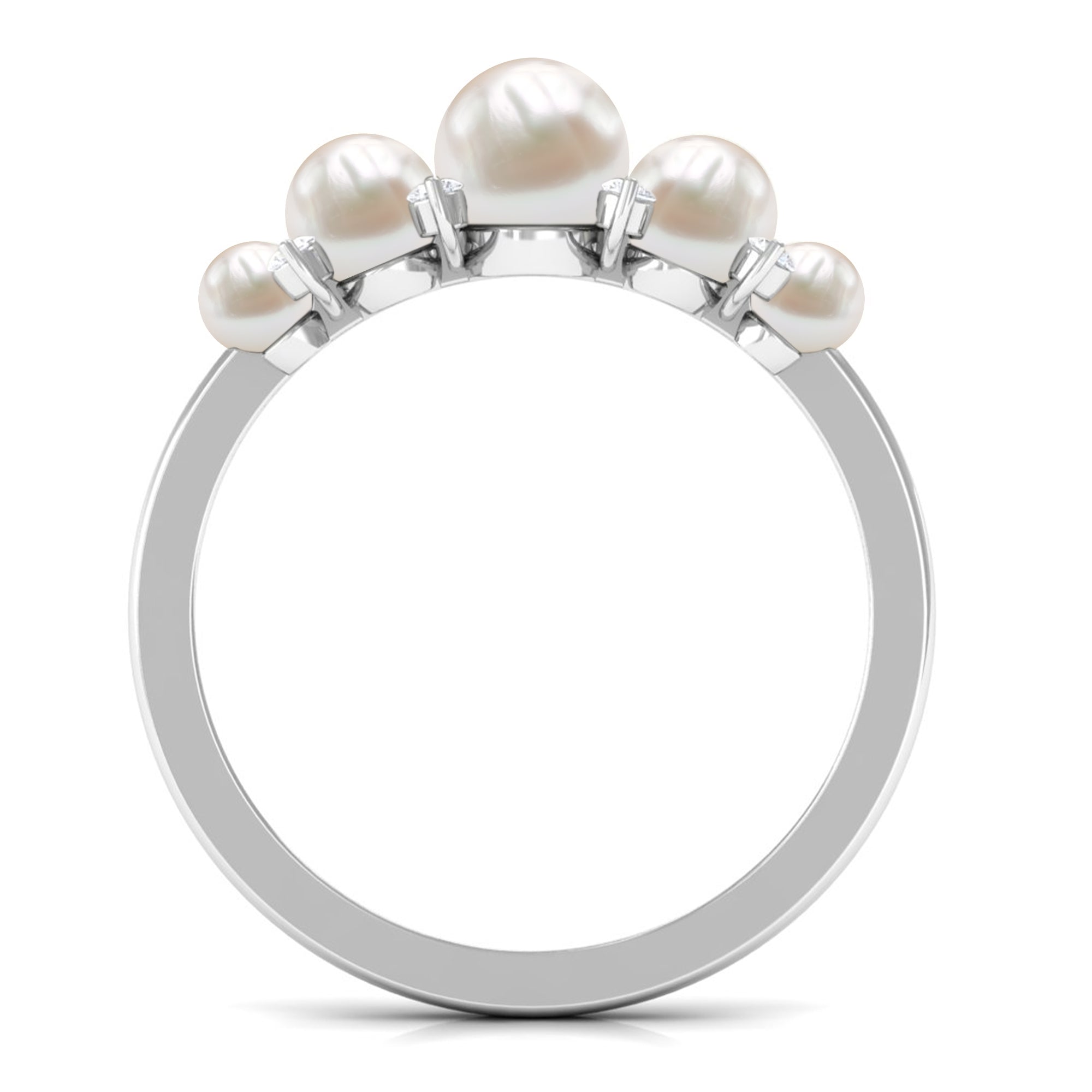 3.75 CT Freshwater Pearl Five Stone Anniversary Band Ring with Diamond
