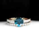 8mm Round London Blue Topaz Solitaire Rings Set with Moissanite Band