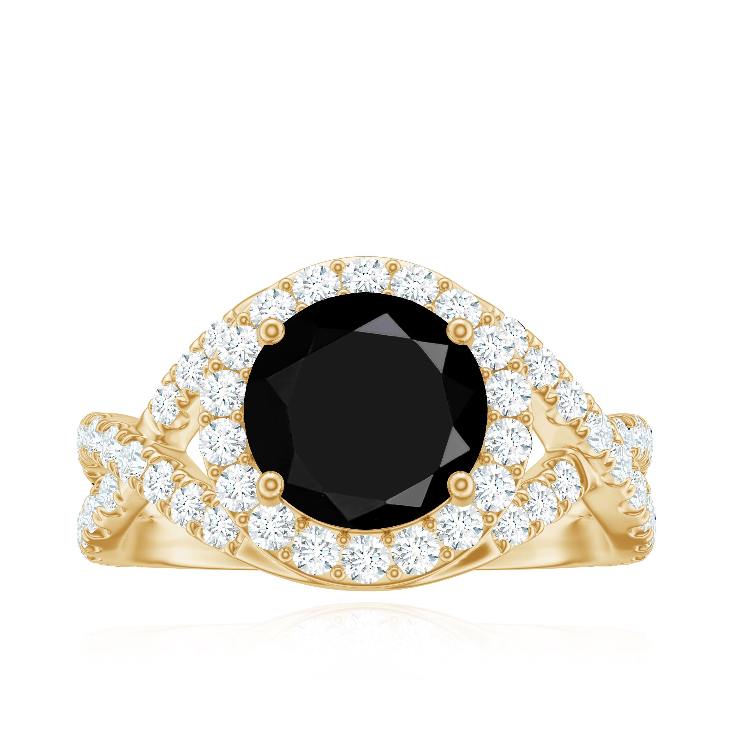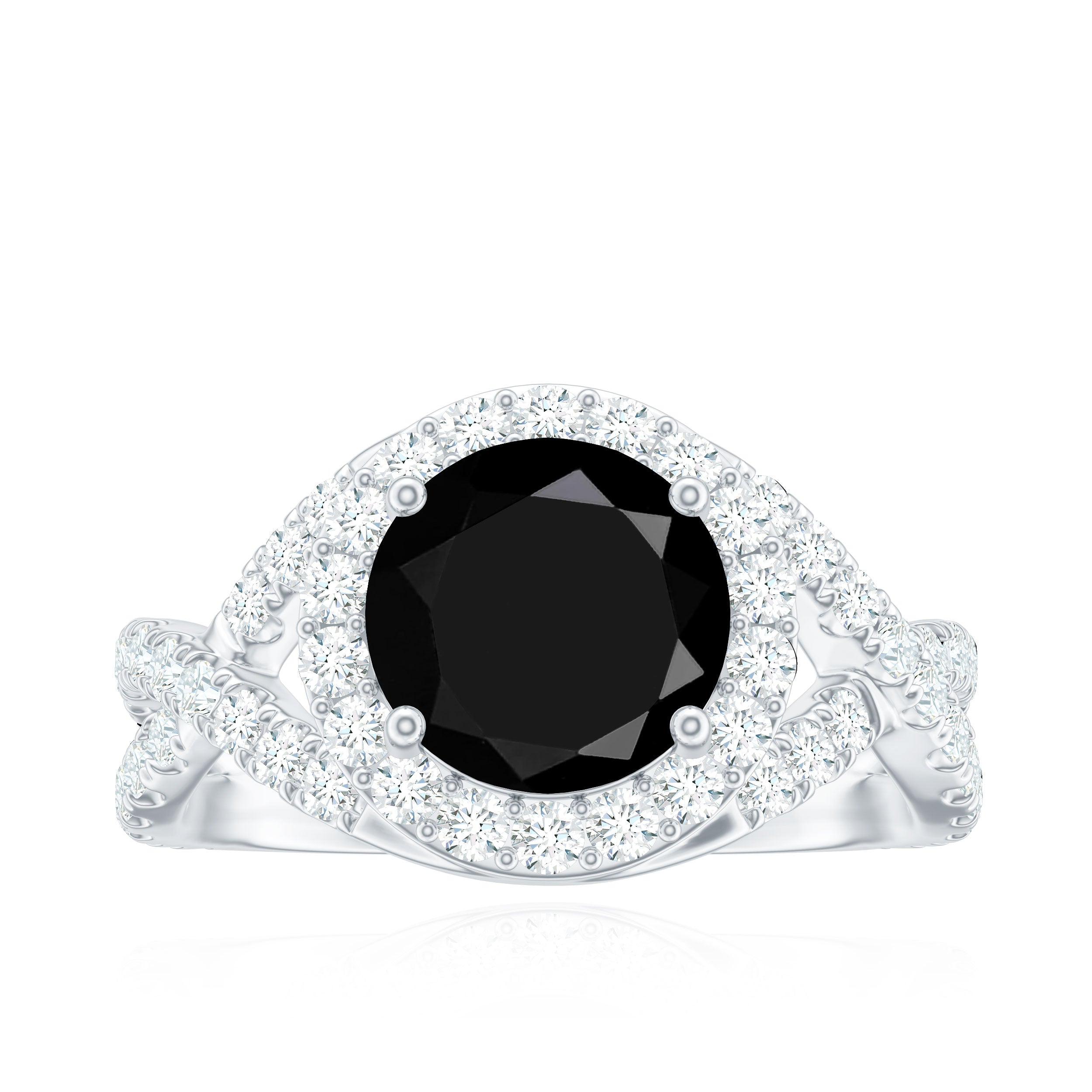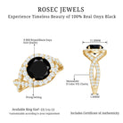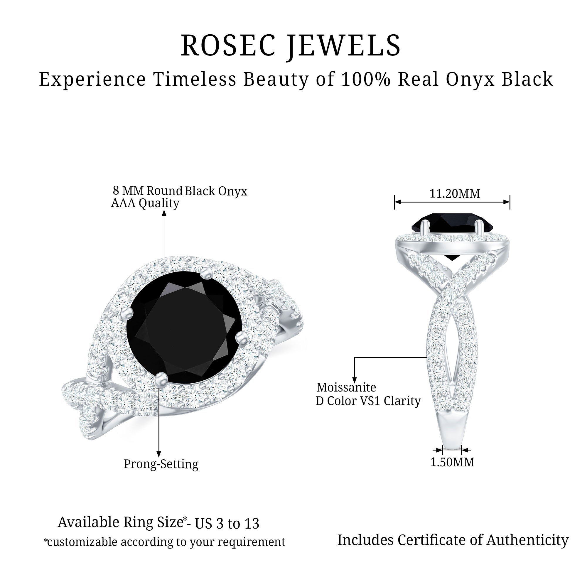 Certified 8 MM Black Onyx Crossover Engagement Ring with Moissanite Halo