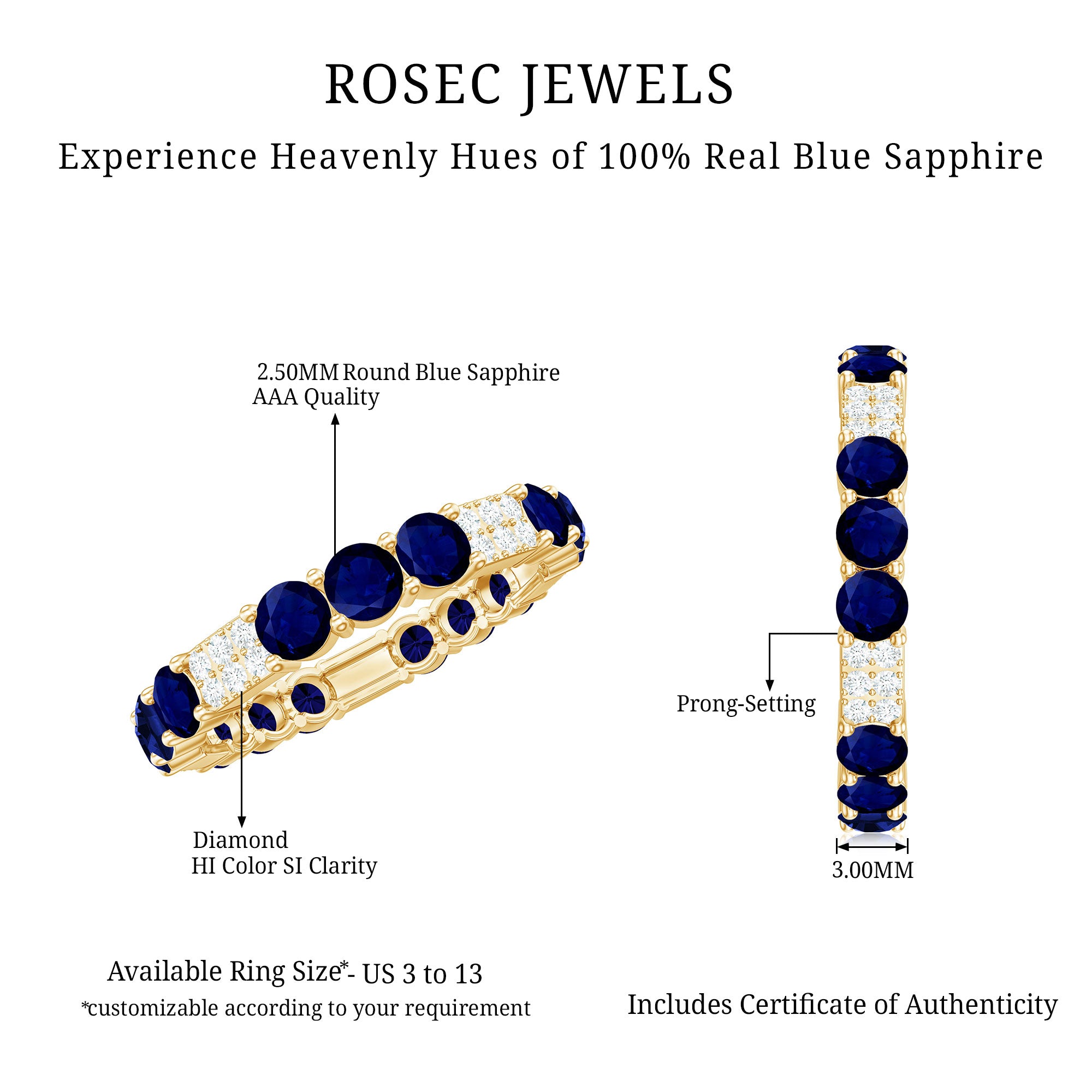 3 CT Blue Sapphire and Diamond Designer Eternity Band Ring