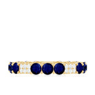 This stunning eternity band ring features a series of brilliant blue sapphire gemstones and sparkling Diamond stones set in an exquisite alternating pattern. The gemstones are carefully selected for their exceptional color and clarity, exuding a timeless and luxurious appeal. The elegant design and the combination of blue sapphire and Diamond stones create a stunning piece of jewelry that is perfect for a special occasion or as a meaningful gift for someone special. Ideal for those who appreciate fine and exquisite jewelry with a touch of sophistication and elegance.