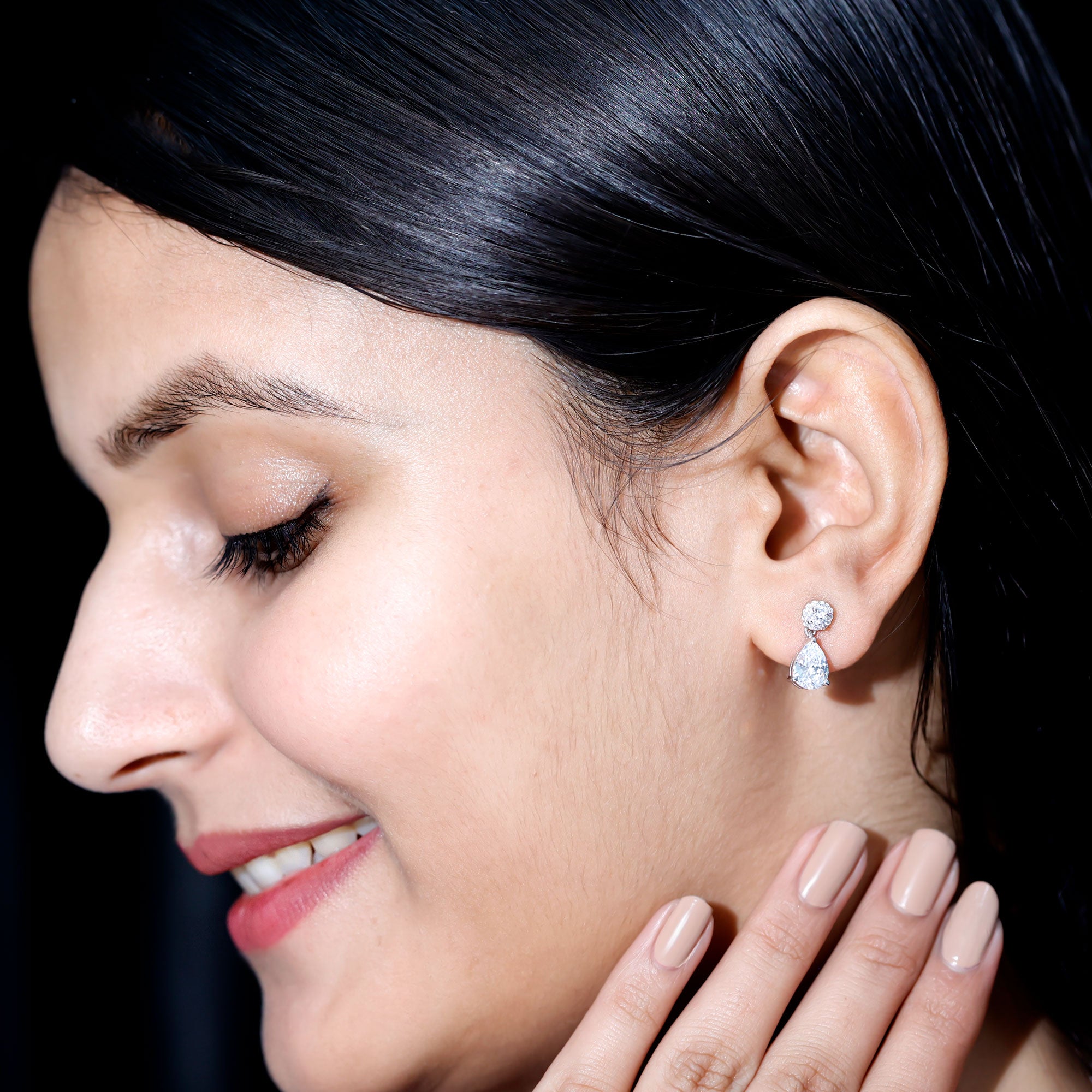 Style your look with these Classic Drop Earrings embellished with 7X9 MM Pear Shape Zircon gemstone in Prong Setting with small Round Shape Zircon gemstones.