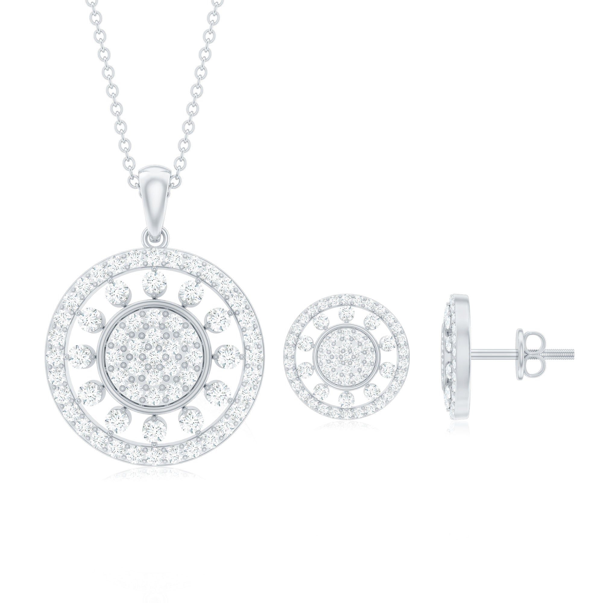3 CT Classic Zircon Cluster Pendant and Earring Set