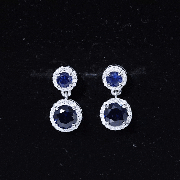 Besides serving to adorn the body, these created blue sapphire earrings are also a royal symbol of love. These dangle earrings are embellished with created blue sapphire and Moissanite accentuating the piece by creating scintillating halo. Get these dangle earrings for your lady and make her feel that your for her is eternal. She will look pretty adorning these created blue sapphire and Moissanite earrings for sure!